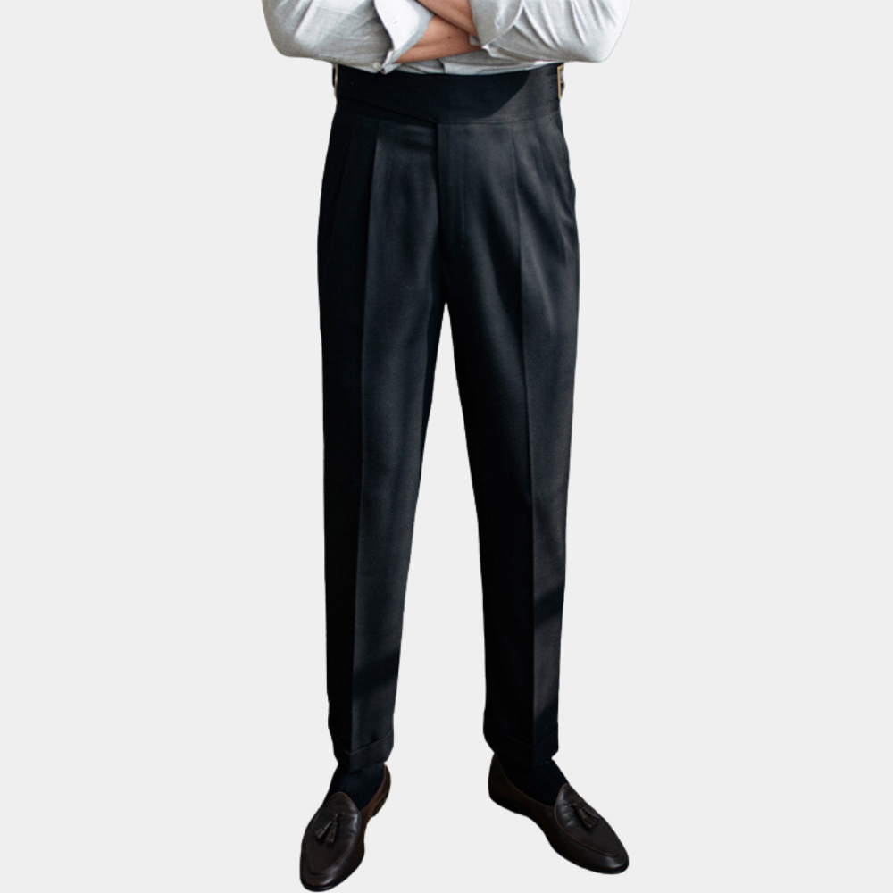 • Klassieke herenbroek met gespen: Deze broek flatteert verschillende lichaamstypes en biedt bewegingsvrijheid.