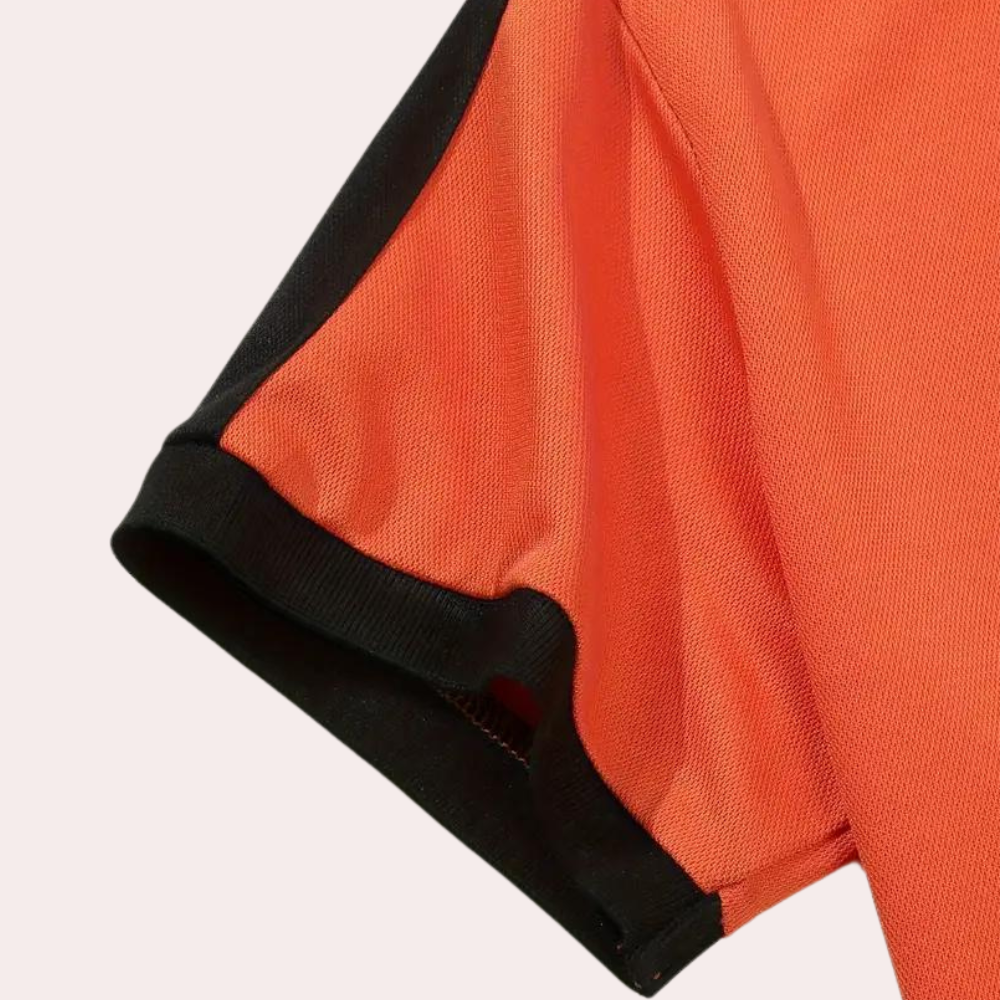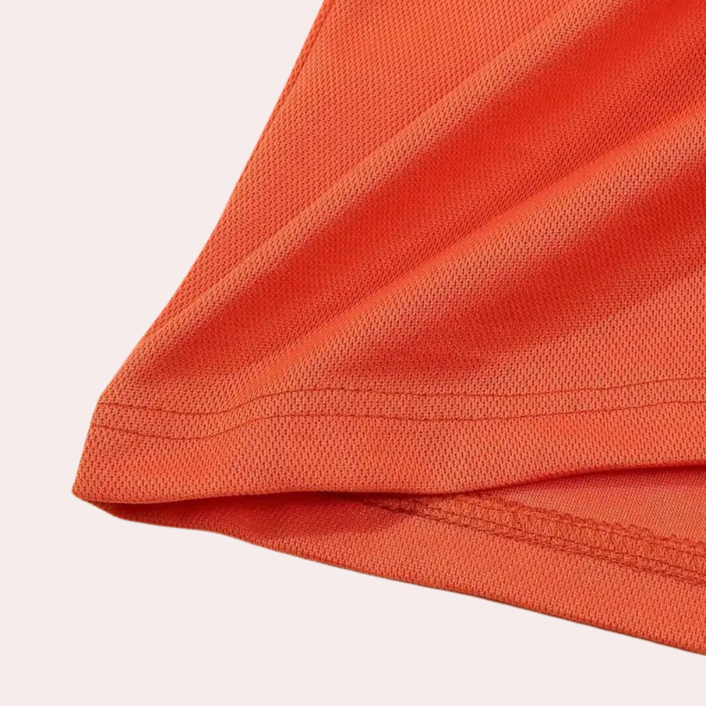 Hier heb je onze Fergal Stijlvol oranje herenpoloshirt. Dit shirt is zowel comfortabel als stijlvol voor uitgaan, maar ook voor thuis op de bank. Dit shirt is gemaakt van een comfortabele stof die geschikt is voor de lente, herfst en winter.