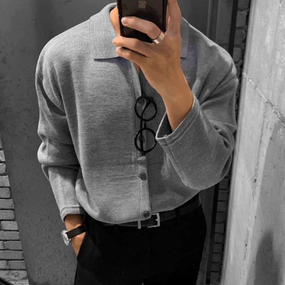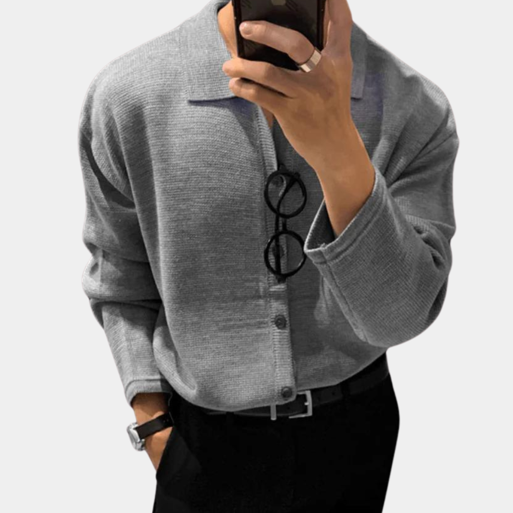 Hier heb je onze Gustaf - Gebreid losvallend herenoverhemd. Dit shirt is zowel comfortabel als stijlvol voor uitgaan, maar ook voor thuis op de bank. Dit shirt is gemaakt van een comfortabele stof die geschikt is voor de lente, herfst en winter.