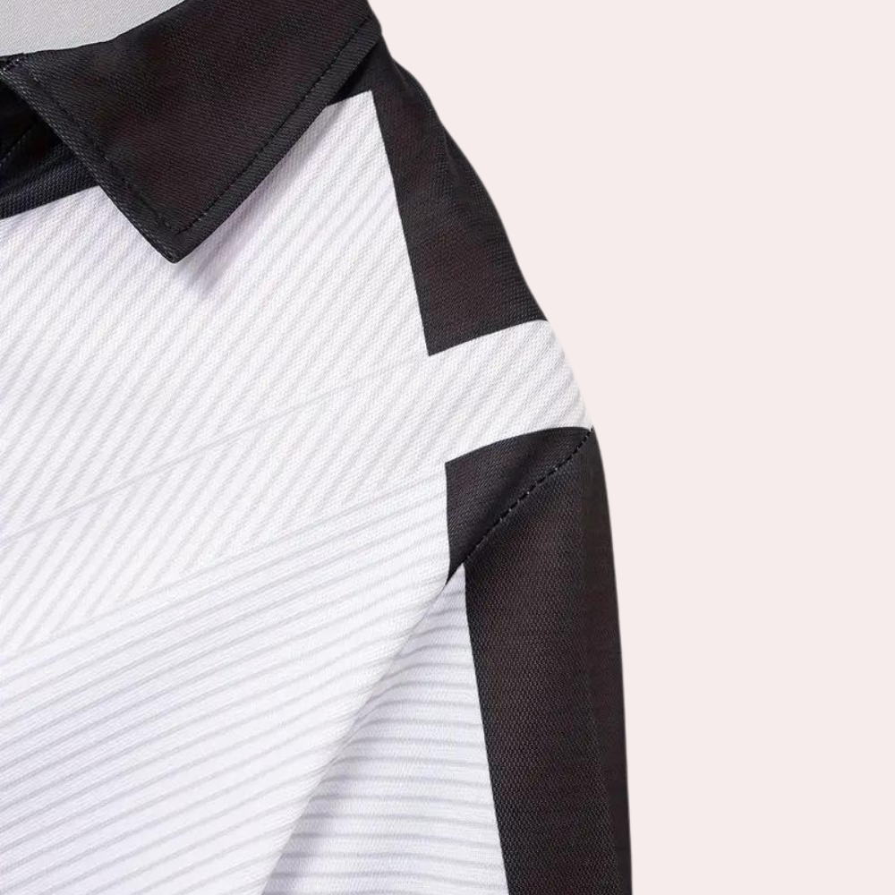 Hier heb je onze Stijlvolle polo met kleurblok voor heren, Dit shirt is zowel comfortabel als stijlvol voor uitgaan, maar ook voor thuis op de bank. Dit shirt is gemaakt van een comfortabele stof die geschikt is voor de lente, herfst en winter.