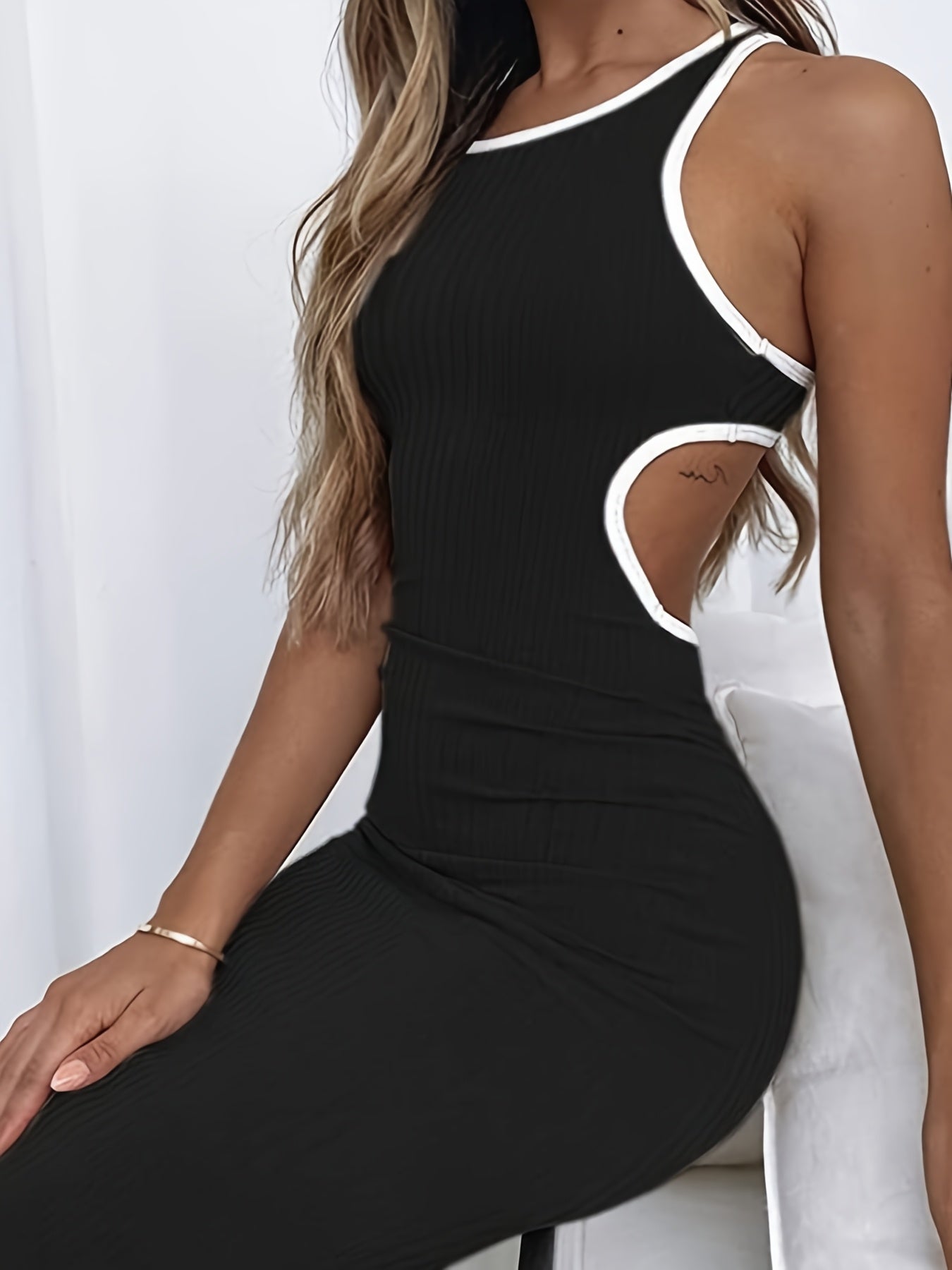 Deze sexy zomerjurk met een uitgesproken ribbed stof en verleidelijke open rugontwerpen combineert moeiteloos stijl en comfort. De nauwsluitende pasvorm benadrukt je figuur, terwijl het gedurfde ontwerp met contrasterende details je look een moderne flair geeft. Of je nu een dag op het strand hebt of een avondwandeling maakt, deze jurk is een must-have voor je garderobe. Bestel jouw favoriete model vandaag nog bij Mowa-Mode!