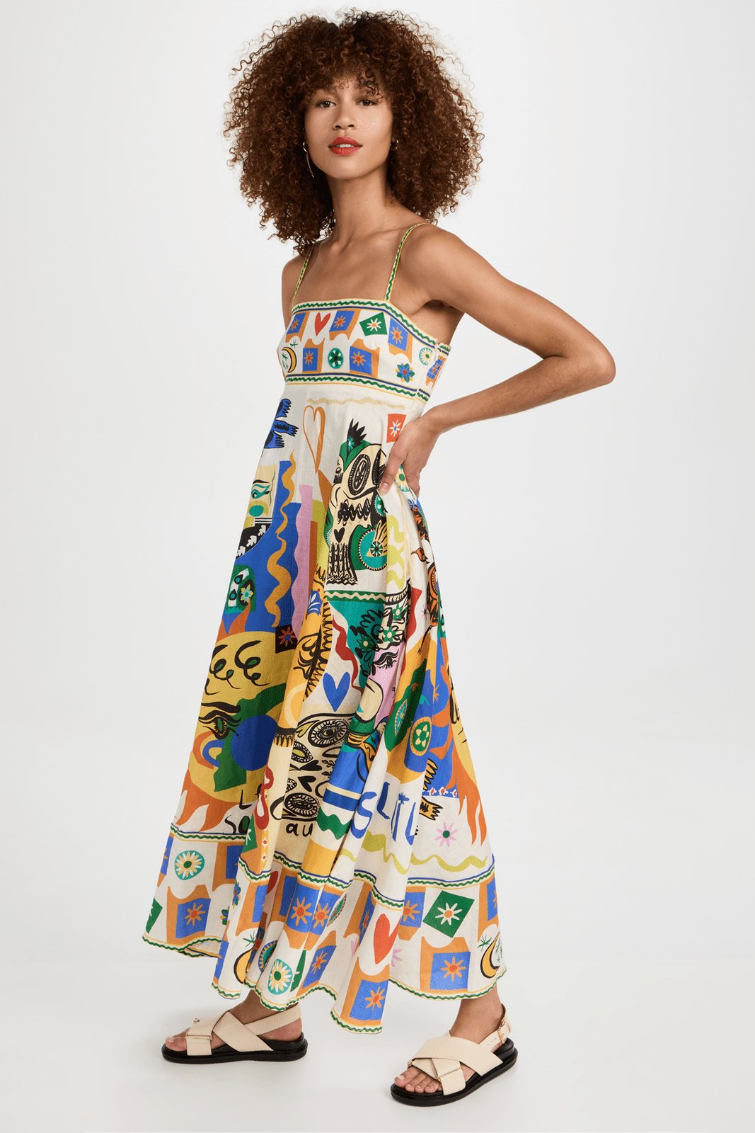 Else - Bedrukte midi-zonnejurk met hoge taille