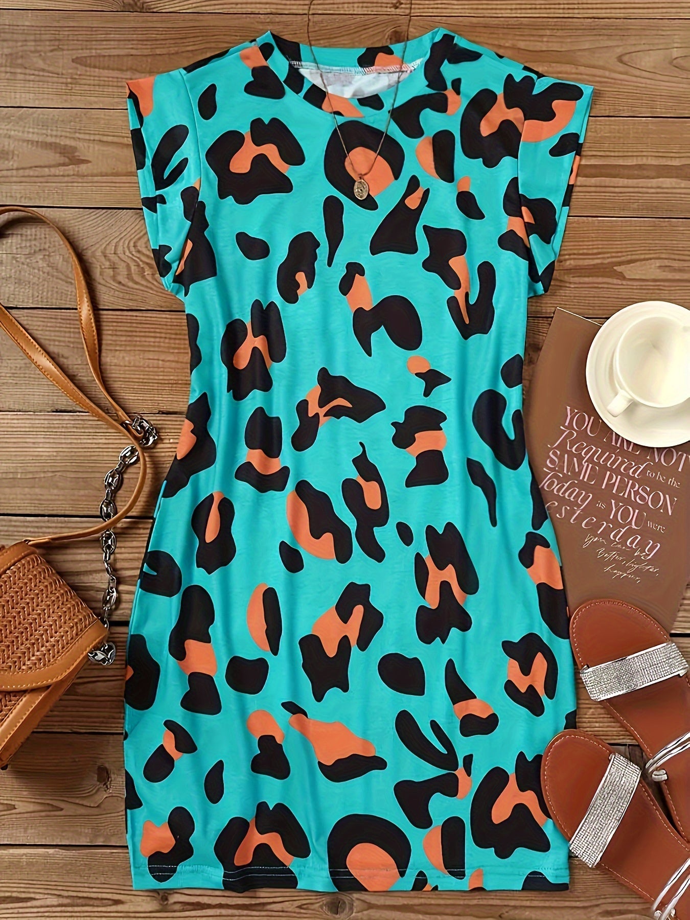 Voel je stijlvol en zelfverzekerd in deze trendy en comfortabele mini-jurk met een gedurfde leopardenprint!