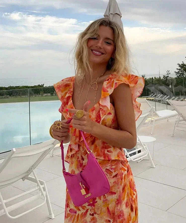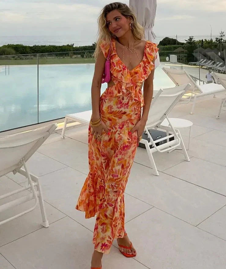 Maak kennis met de betoverende Aurora Open Rug Ruffle Jurk, ontworpen om je uitstraling naar een hoger niveau te tillen. Deze elegante jurk combineert een stijlvolle open rug met delicate ruches, waardoor je opvalt bij elke gelegenheid. Gemaakt van hoogwaardige materialen, biedt deze jurk een perfecte pasvorm en ultiem comfort. Ideaal voor feestjes, bruiloften en avondjes uit.