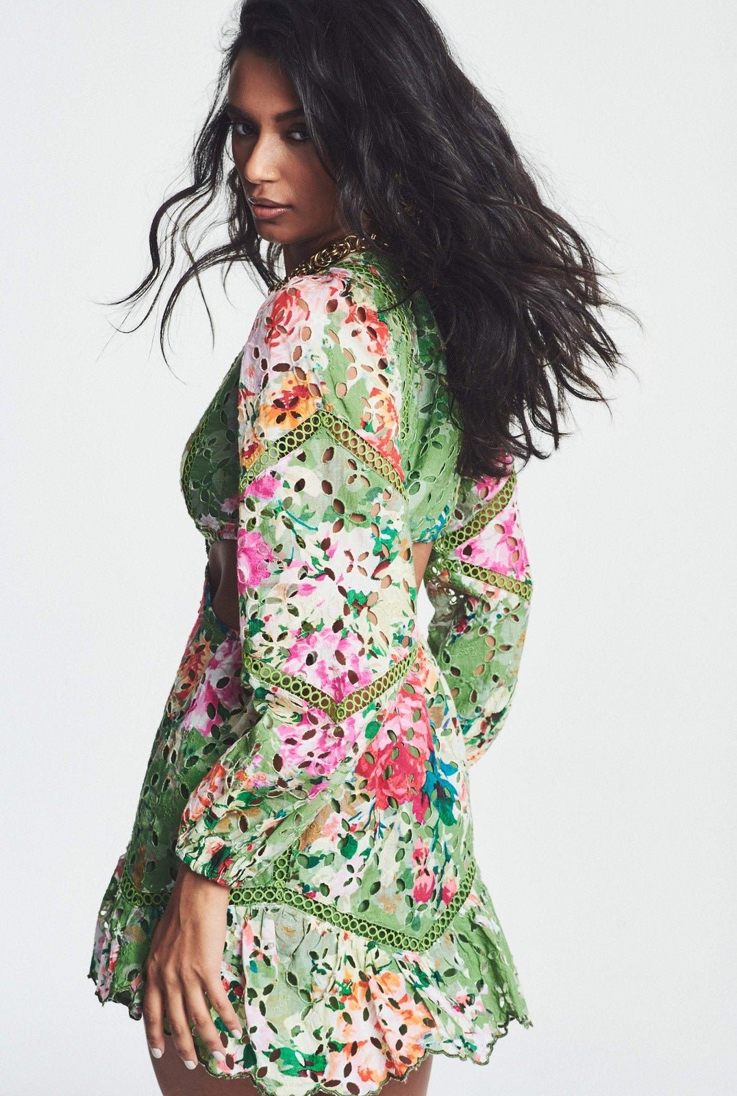 Bery mini-jurk met geborduurd kant en uitsnijdingen