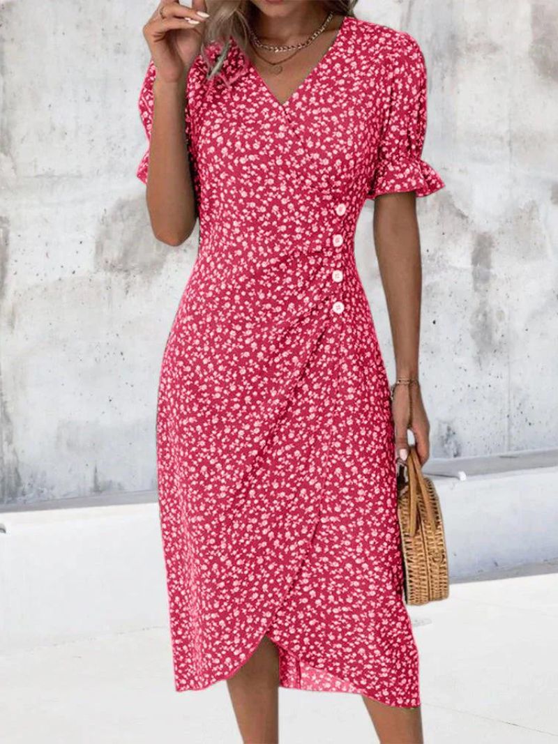 Deze jurken zijn met de hand gemaakt met absolute precisie om je de perfecte look te geven die je wenst. Omarm de charme van de zomer in onze Maria bloemenjurk met V-hals, met een elegant vintage silhouet en hoge taille. Deze jurk straalt elegantie uit en is perfect voor een dagje strand of een casual uitje in de zon.