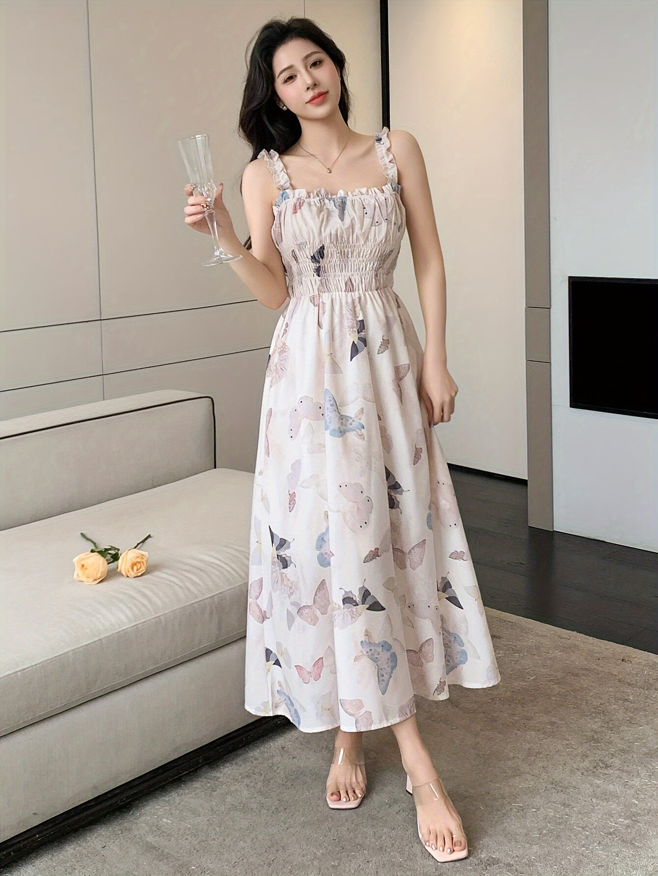 ✔ Verfijnde Vlinderprint – De subtiele, speelse vlinderprint maakt de jurk zowel chic als vrolijk, een echte blikvanger.