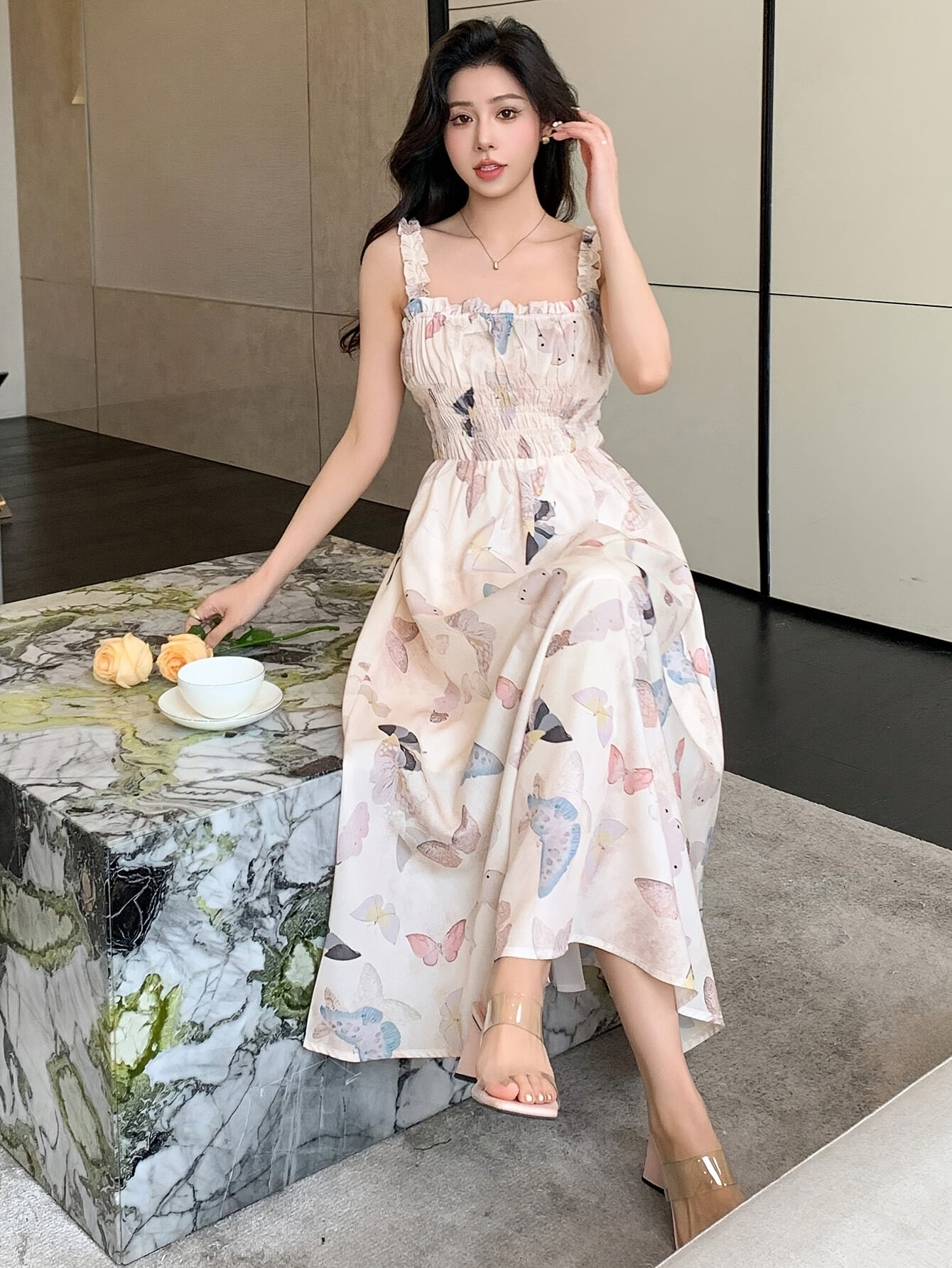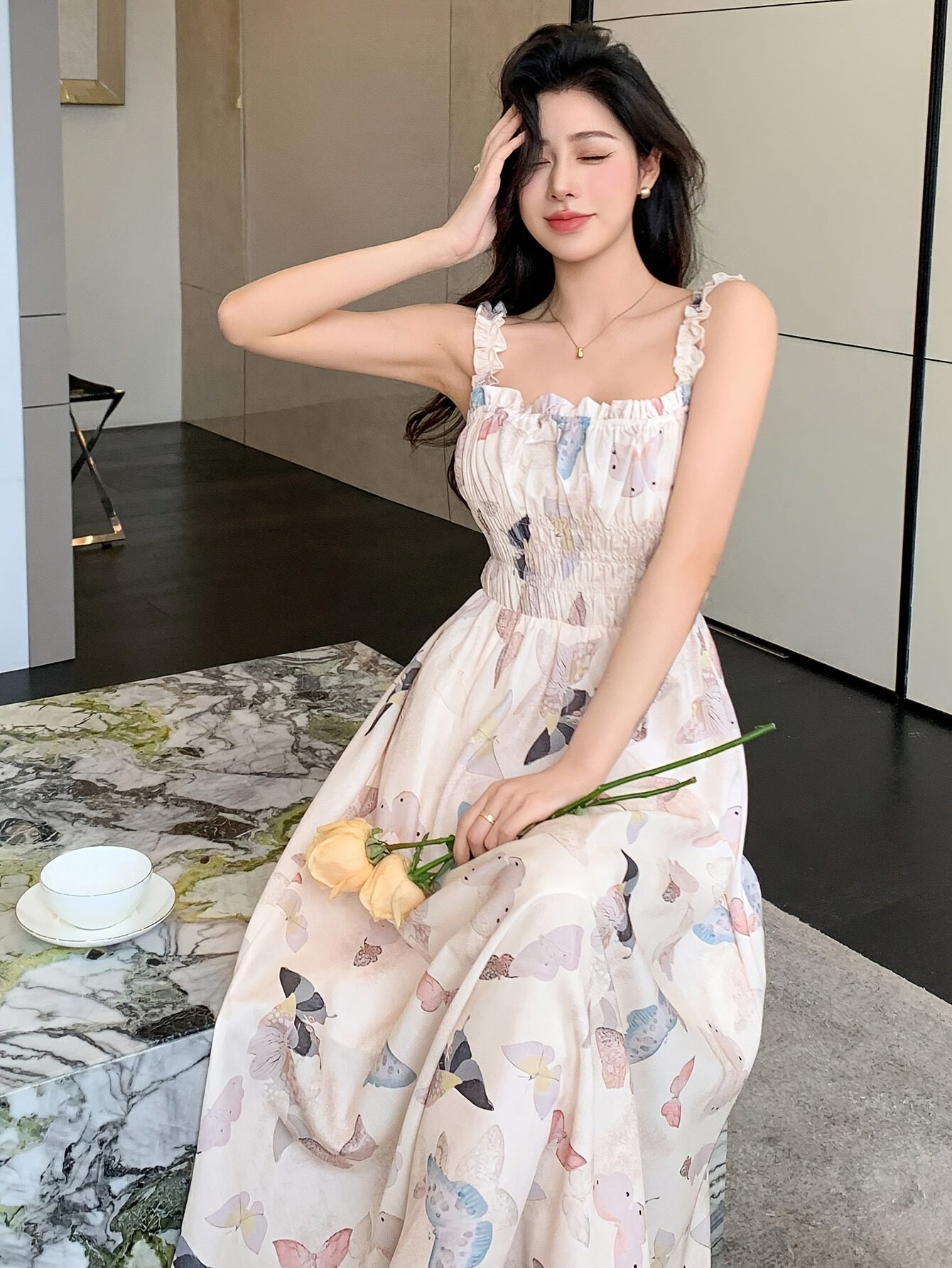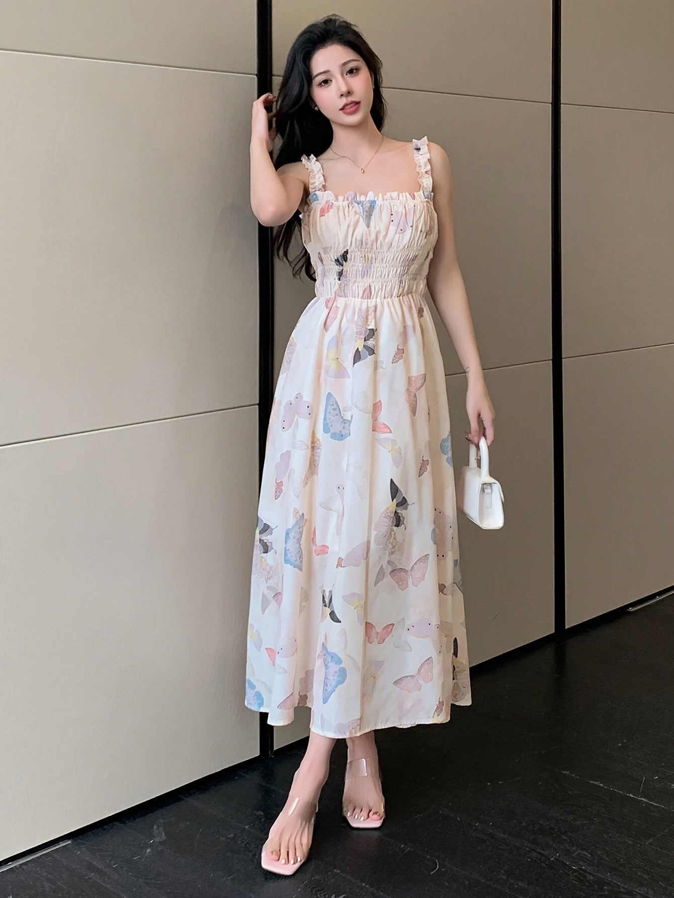 Deze verfijnde jurk met een charmante vlinderprint is ideaal voor zomerse dagen. Het elastische smock ontwerp biedt comfort en past zich aan je lichaam aan, terwijl de delicate spaghettibandjes een subtiele, vrouwelijke uitstraling geven. Of je nu een casual dagje uit hebt of een speciale gelegenheid, deze jurk zorgt voor de perfecte look. Bestel deze must-have jurk vandaag nog bij Mowa-Mode!