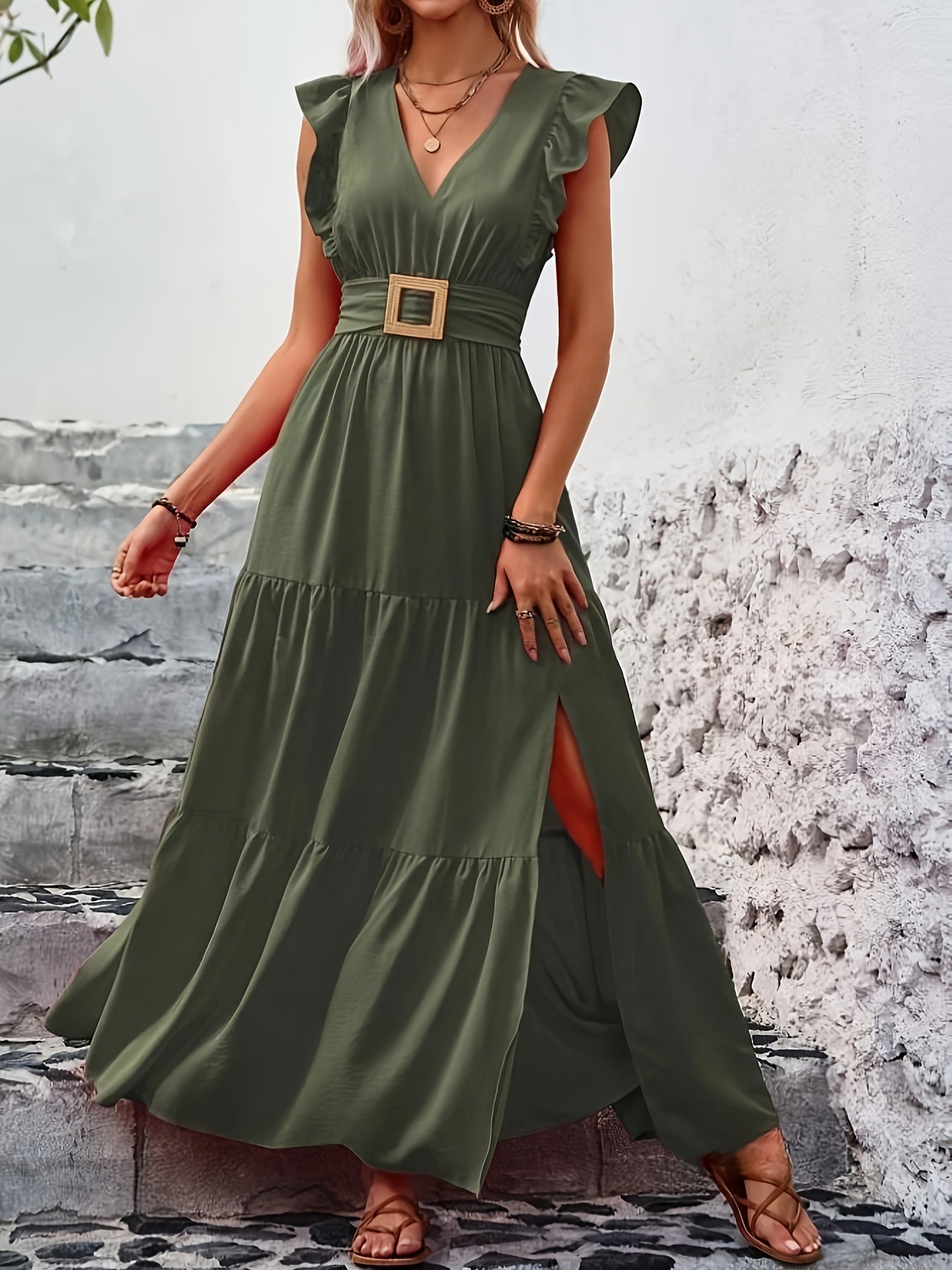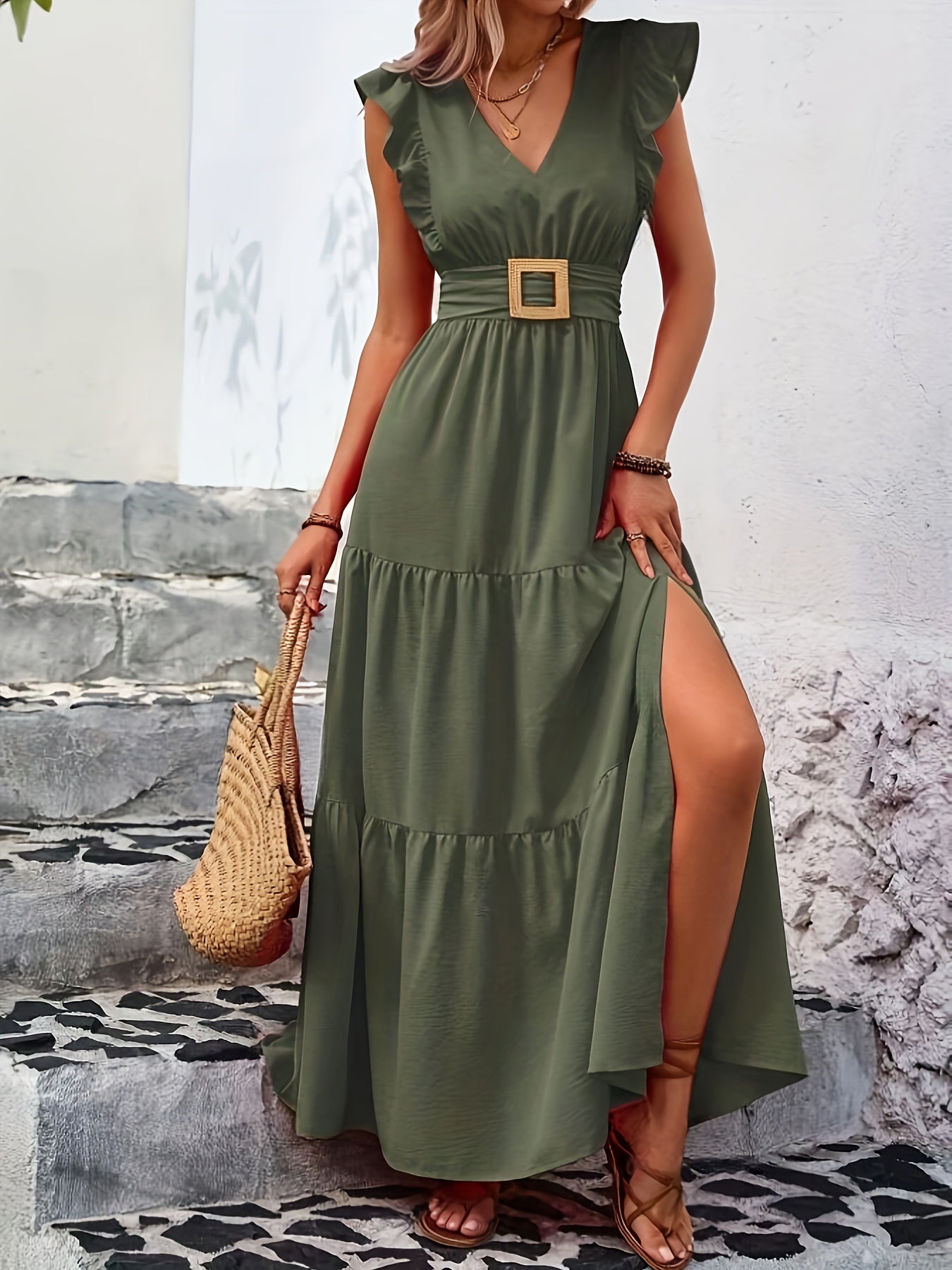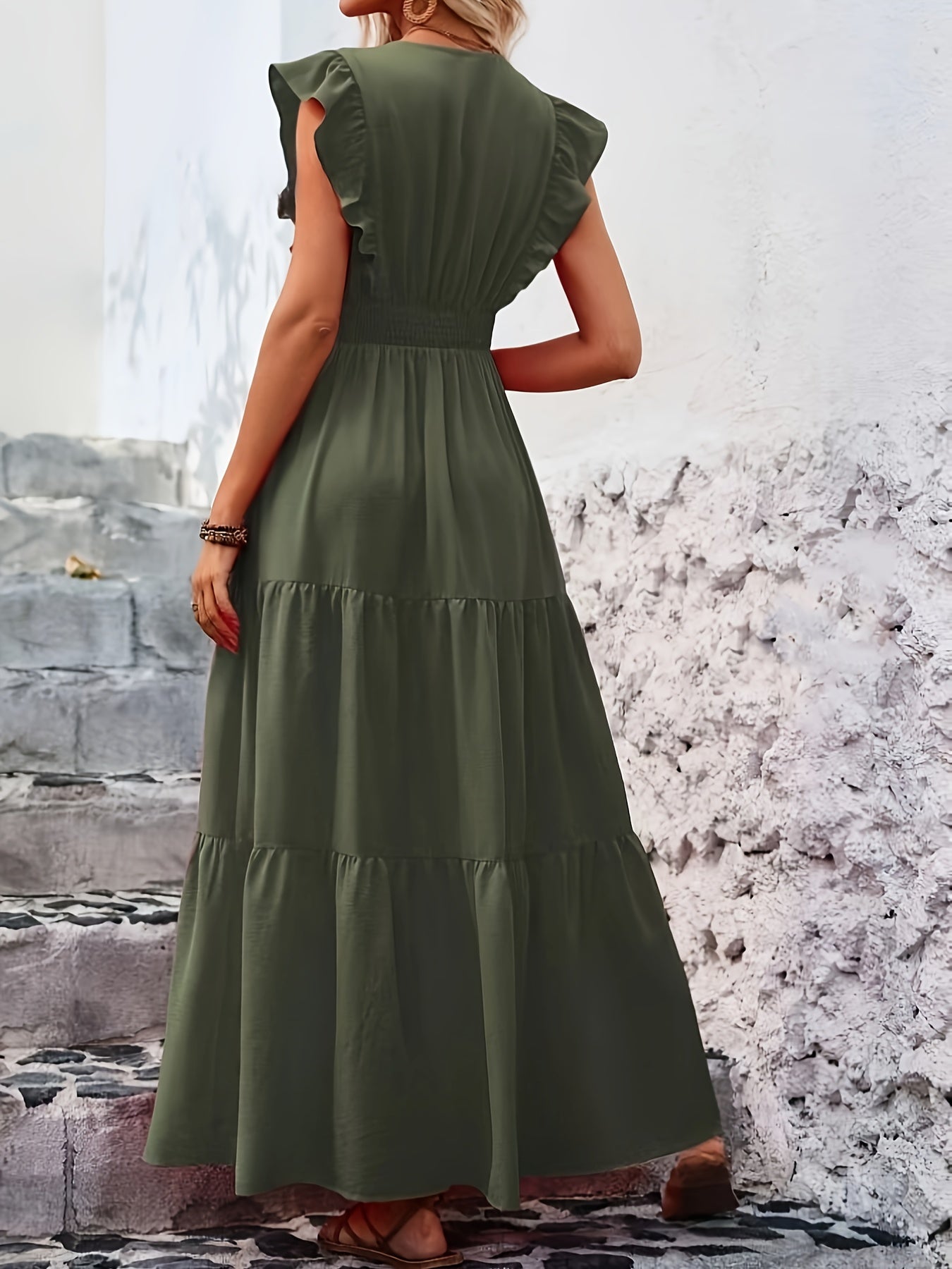 Clara | Vrouwelijke Maxi Jurk met V-Hals en Ruches