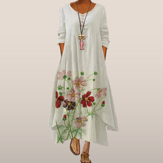 Damesjurk – Lange Zomerjurk met Bloemenprint en Driekwart Mouwen