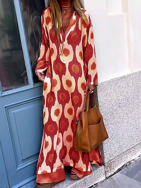 Ontdek Danni - Stijlvolle Bedrukte Losse Jurk met Lange Mouwen
