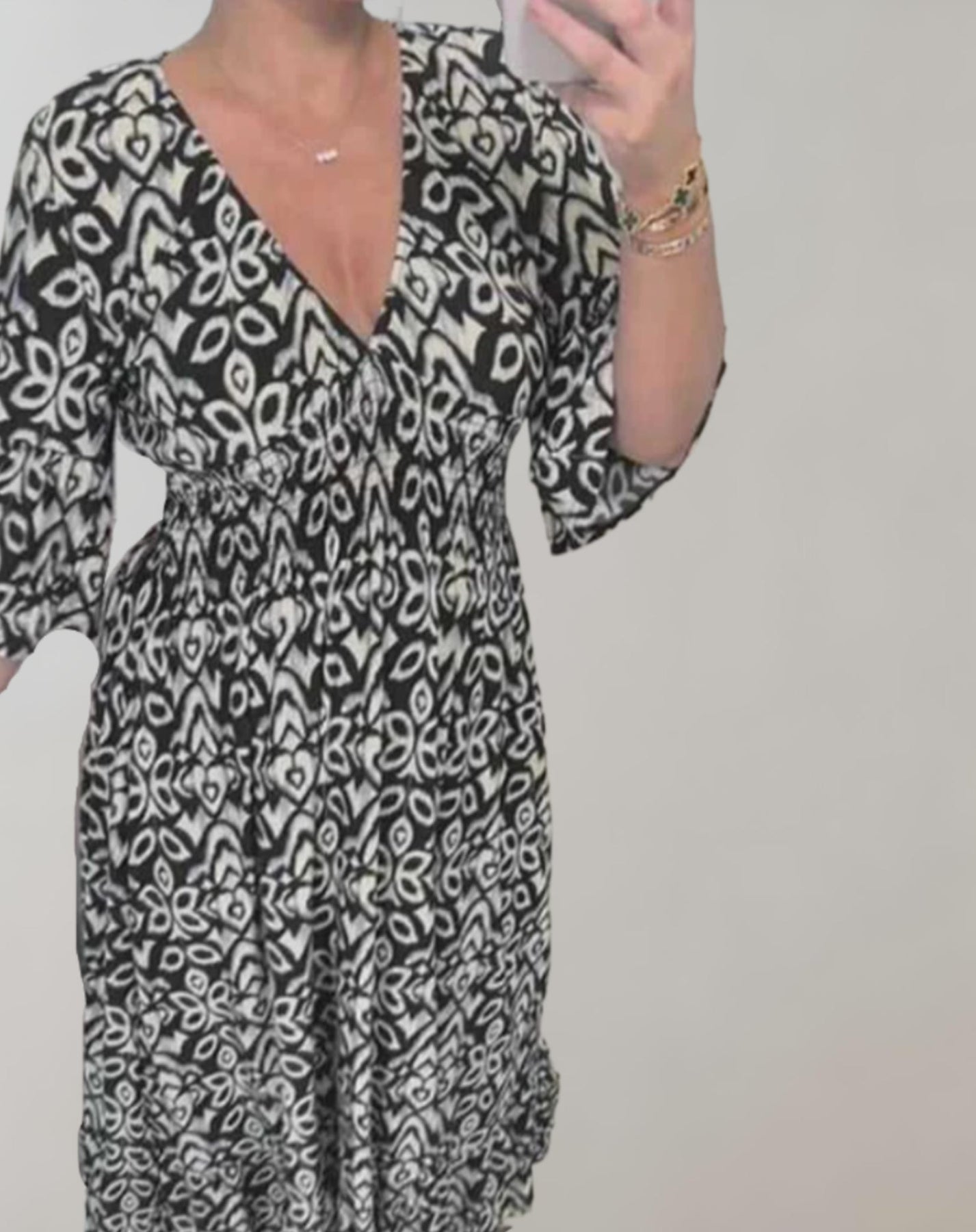 Laat je stralen met Delanie - Casual Bedrukte Jurk met Halve Mouwen