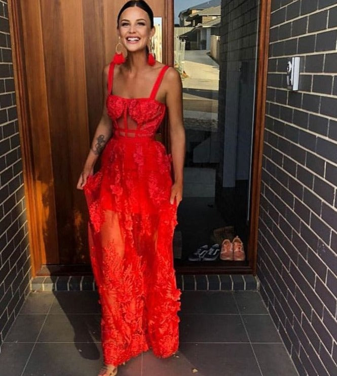 Op zoek naar een jurk die je laat stralen? De Elea lange jurk combineert verfijnde bloemen met verleidelijk mesh. Het doorschijnende design met elegante maxilengte en brede schouderbanden zorgt ervoor dat jij gegarandeerd opvalt, of je nu een gala, feestje of diner hebt.