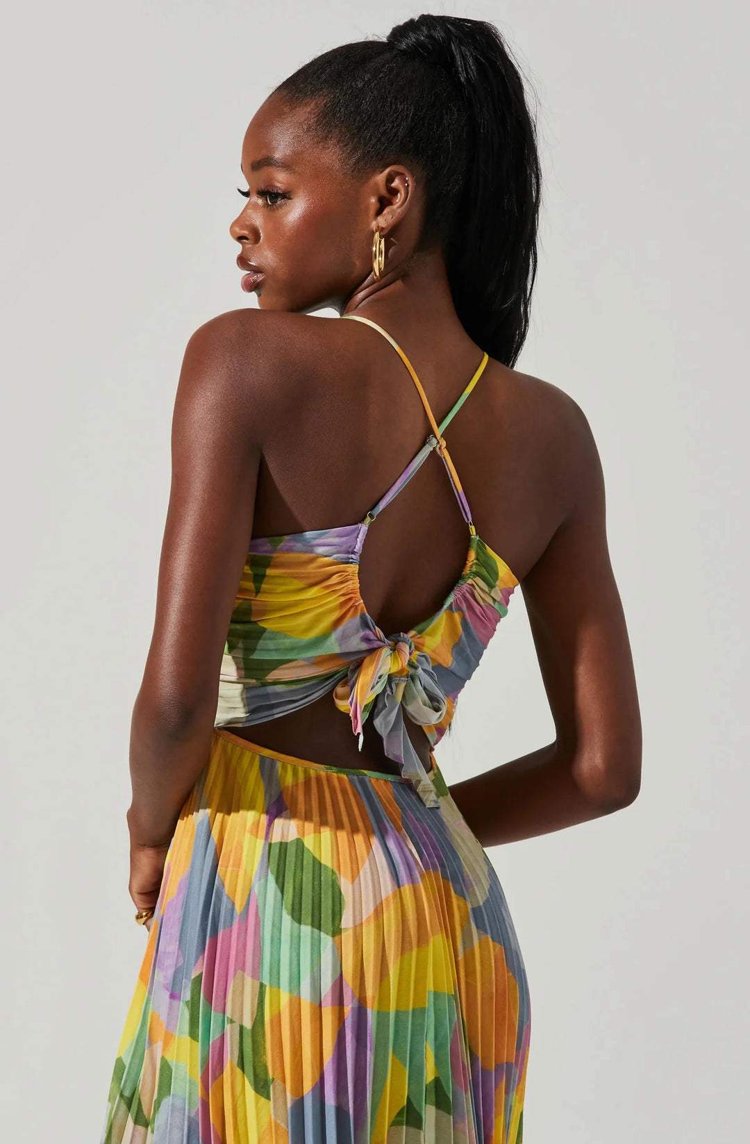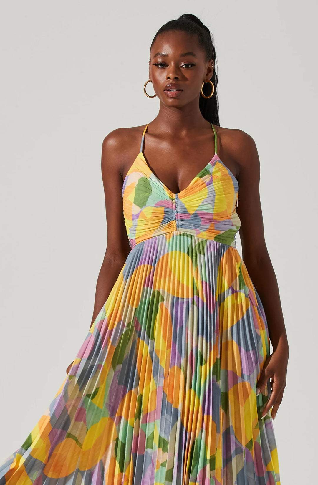Fabienne - geprinte geplooide midi-jurk met knoop