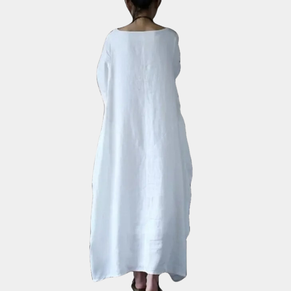 Lange jurk voor dames belichaamt moeiteloze gratie en tijdloze stijl. Deze jurk is perfect voor de lente en biedt comfort, vertrouwen en verfijning. Met zijn losse pasvorm, halflange mouwen en lambrisering is hij comfortabel en ademend, waardoor elke stap een statement van elegantie wordt. Een veelzijdige must-have voor elke garderobe.