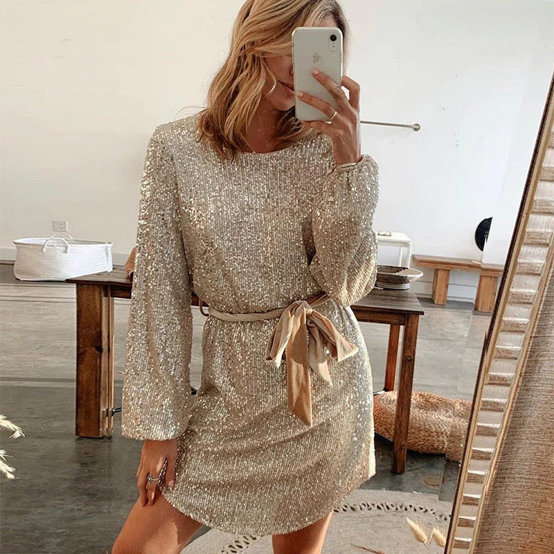De Iris – Glitter Feestjurk met Riem: Sprankelend en Elegant