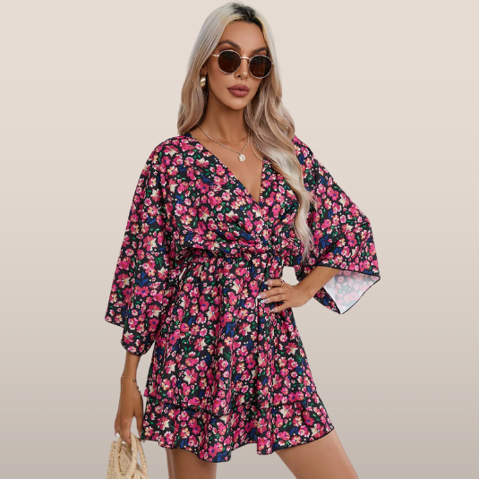 • Charmant Ontwerp: De wijde mouwen, wikkel met v-hals, elastische taille en ruffle creëren een speelse en verfijnde look.