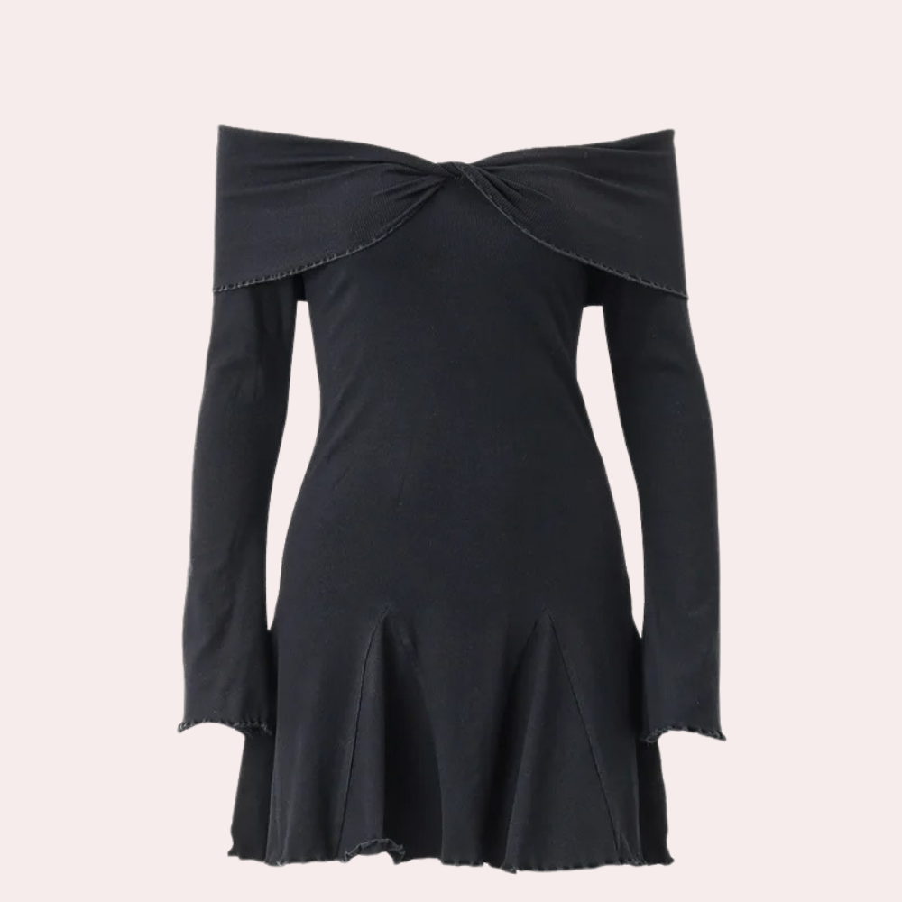 Onze Joelene Gebreide damesjurk met off shoulder heeft een prachtige vorm die je rondingen zal flatteren en je een vrouwelijke uitstraling zal geven.