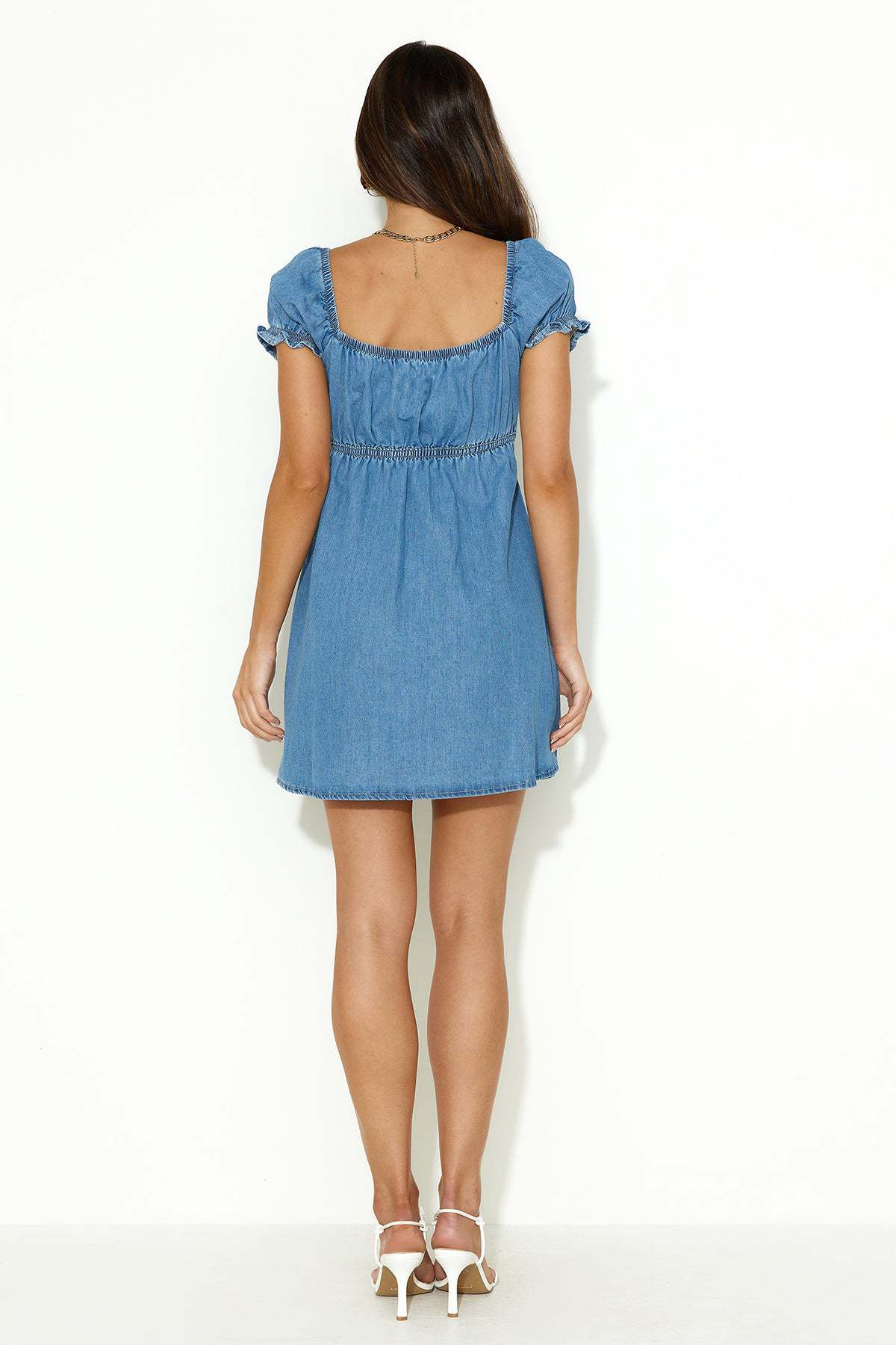 Josie - Denim damesjurk met pofmouwen