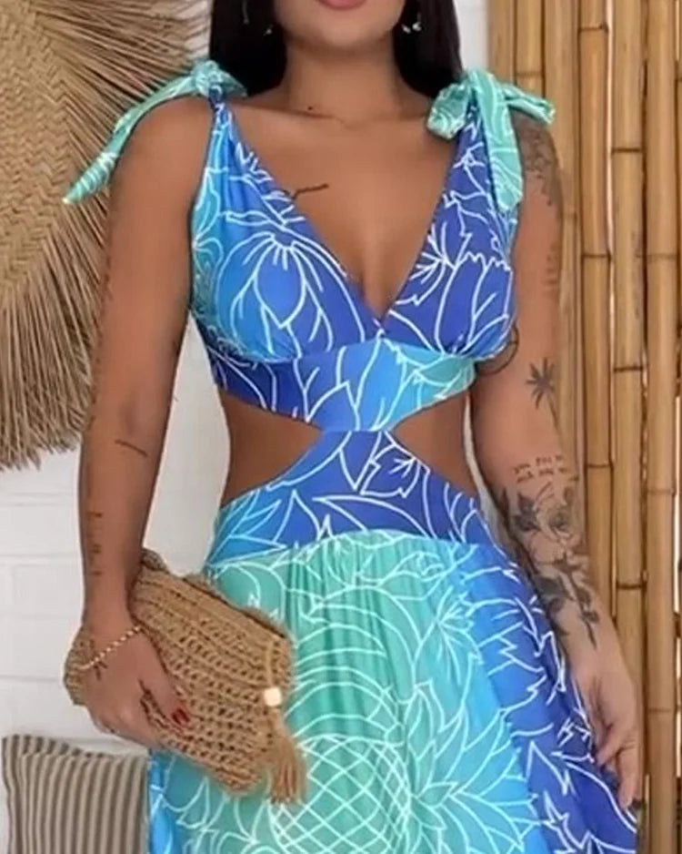 Deze lange jurk met levendige print is ideaal om er fris, vrouwelijk en stijlvol uit te zien. Het vloeiende en comfortabele ontwerp accentueert het silhouet en is perfect voor zonnige dagen, vakanties, openluchtfeestjes of casual evenementen. Combineer hem met sandalen of hakken voor een speelse en geraffineerde look.