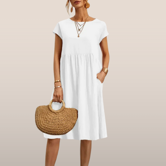 Katoenen midi-jurk – Casual ontwerp met korte mouwen en zakken