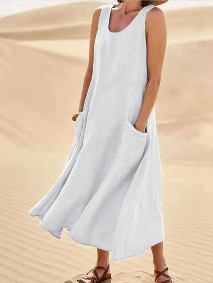 Linnen maxi-jurk – Mouwloos ontwerp met wijde zakken