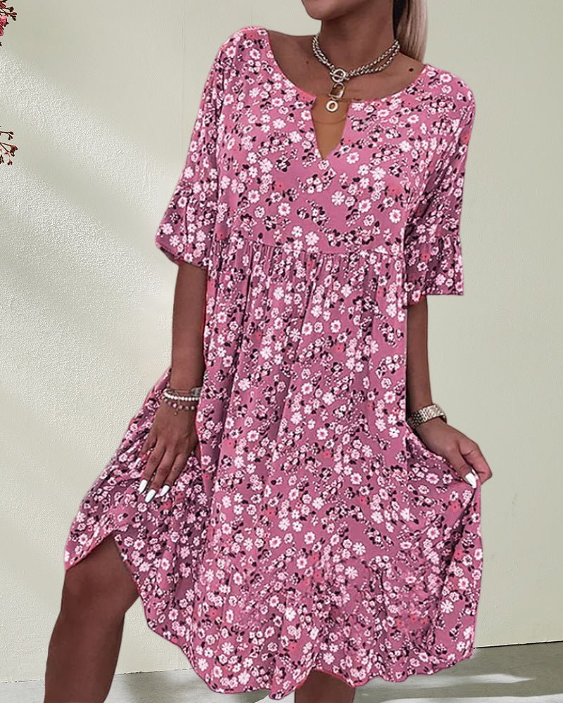 Luchtige damesjurk met bloemenprint – Halflange snit