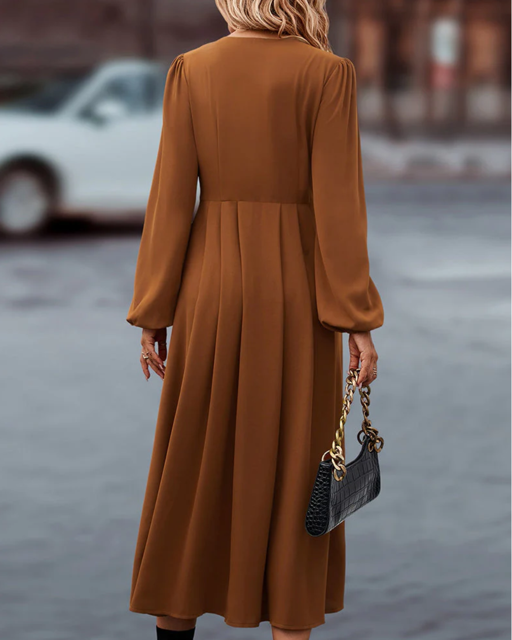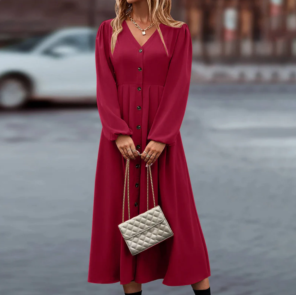 Martha - Elegant lang jurkje met lange mouwen en knoopsluiting