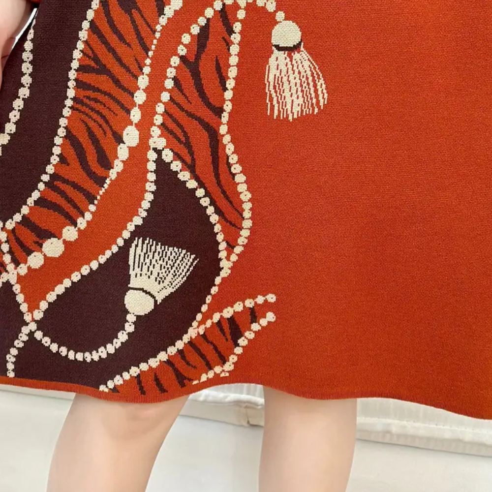 Deze jurk is zorgvuldig gemaakt met een flatterende midilengte en een verfijnd breisel dat perfect werkt voor verschillende gelegenheden, van een ontspannen lunch tot een chic avondje uit. De tijdloze look zorgt voor een verzorgde uitstraling, of je nu sneakers of elegante hakken draagt.