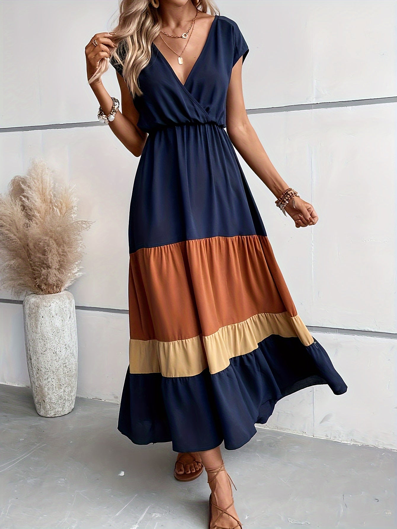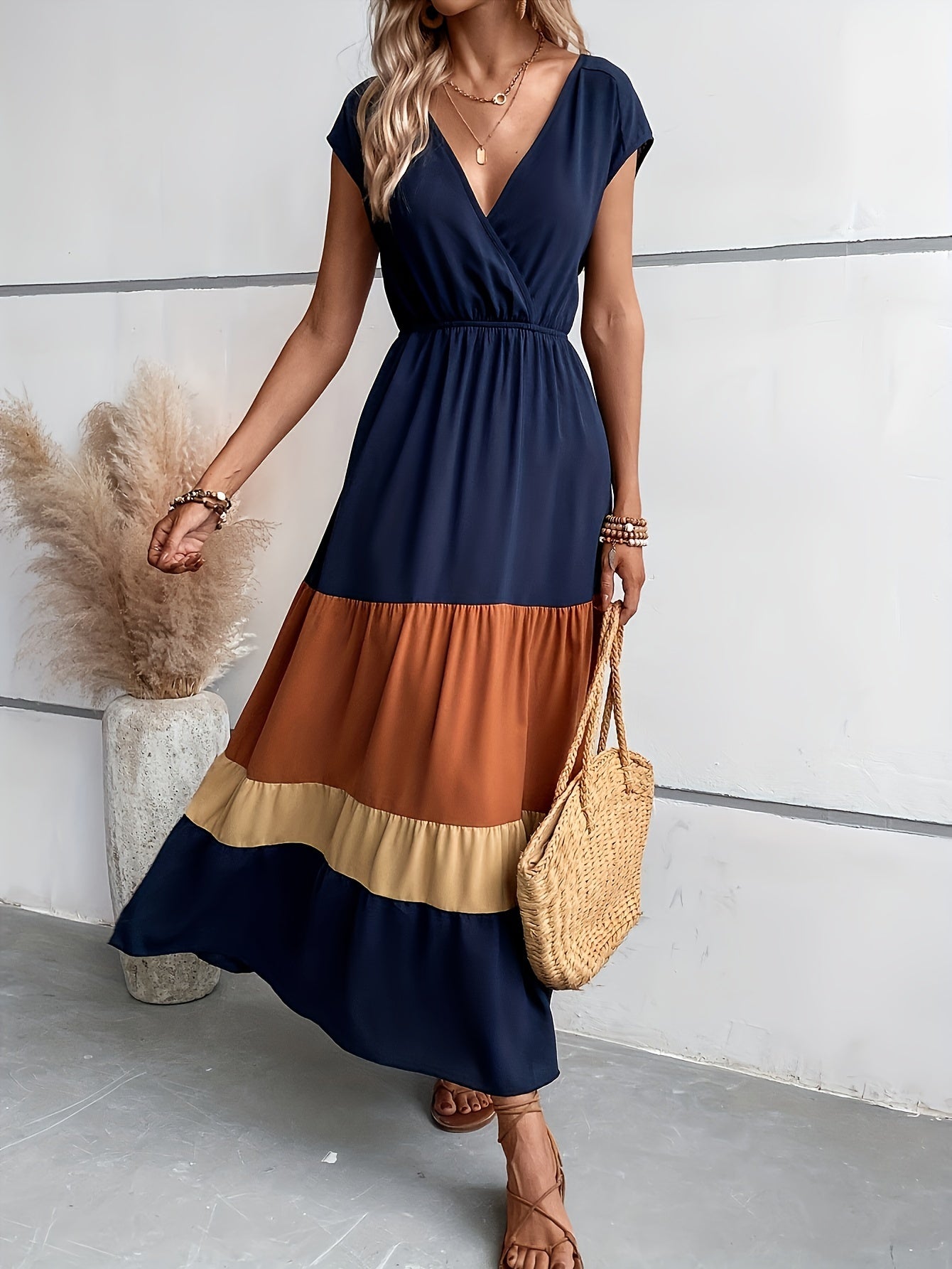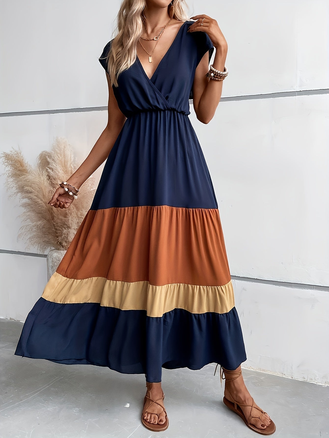 Norah | Elegante Maxi Jurk met Kleurenblokken en V-Hals