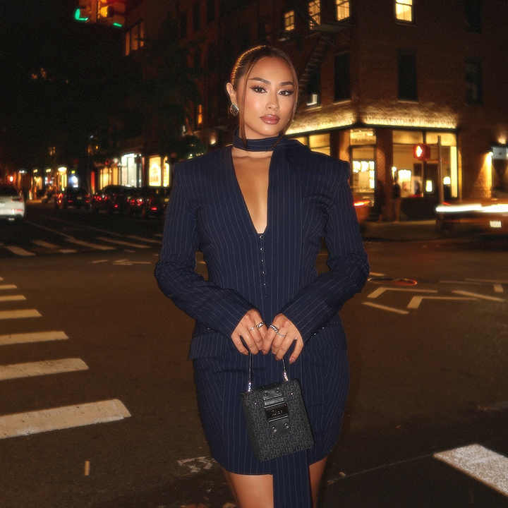 Een elegante blazerjurk die stijl en comfort perfect combineert. Met een verfijnd streepdesign en een getailleerde pasvorm straal je zelfvertrouwen uit bij elke gelegenheid. Ideaal voor een avondje uit of een formele bijeenkomst – altijd chic, altijd verfijnd.