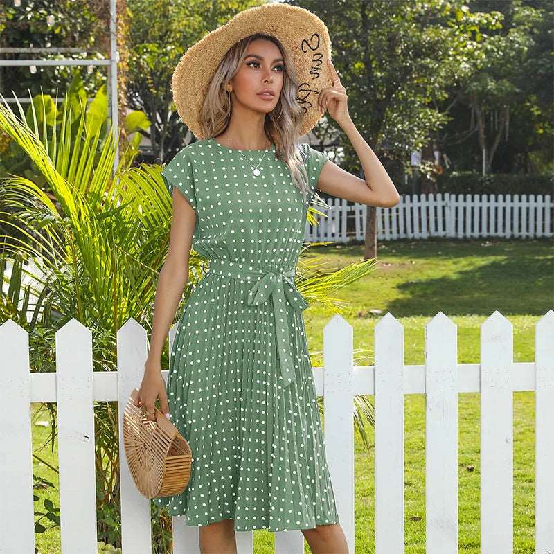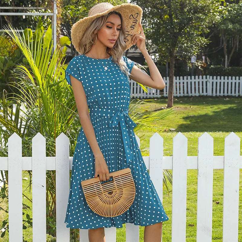 Ontdek de unieke charme van de Rachel - Klassieke Puntjurk voor Vrouwen, een elegante jurk met een speelse stippelprint die geschikt is voor diverse gelegenheden. Deze jurk combineert een flatterende hoge taille met een knielengte, waardoor je zowel stijl als comfort ervaart. Ideaal voor vrouwen die moeiteloos chic willen zijn.