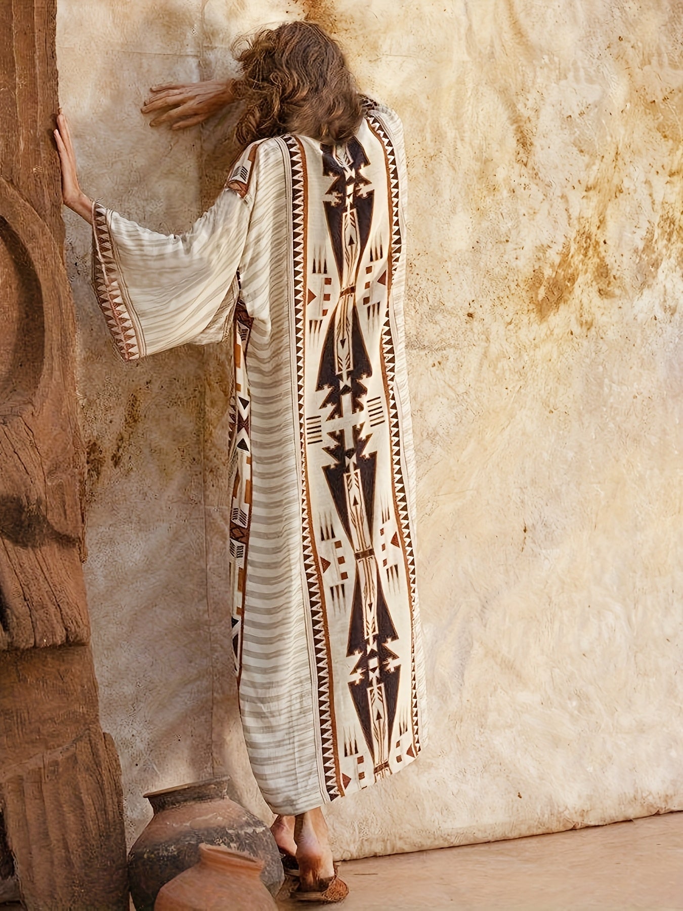 ✔ Verfijnde Bedrukking – De unieke geometrische patronen geven de jurk een bohemien touch, perfect voor zomerfeesten en stranden.