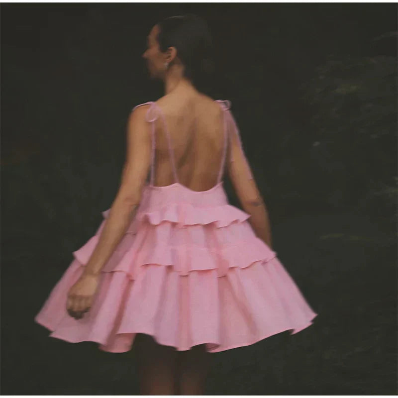 Deze elegante jurk met meerdere ruches combineert lichtheid en vrouwelijkheid voor een verfijnde look. De slanke bandjes voegen een delicaat accent toe, terwijl de vloeiende snit zorgt voor een sierlijke val. Perfect voor een speciale gelegenheid of een chique zomeroutfit, het biedt comfort en stijl in eenvoud. Voeg dit luchtige stuk toe aan je garderobe!