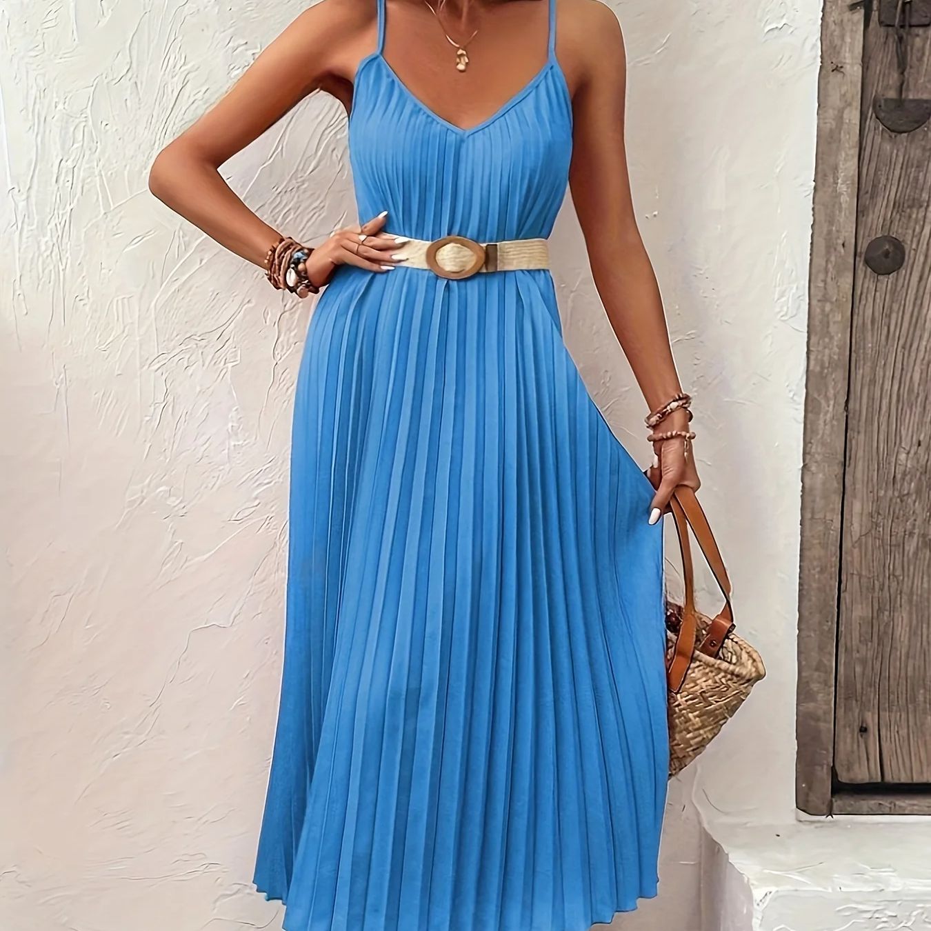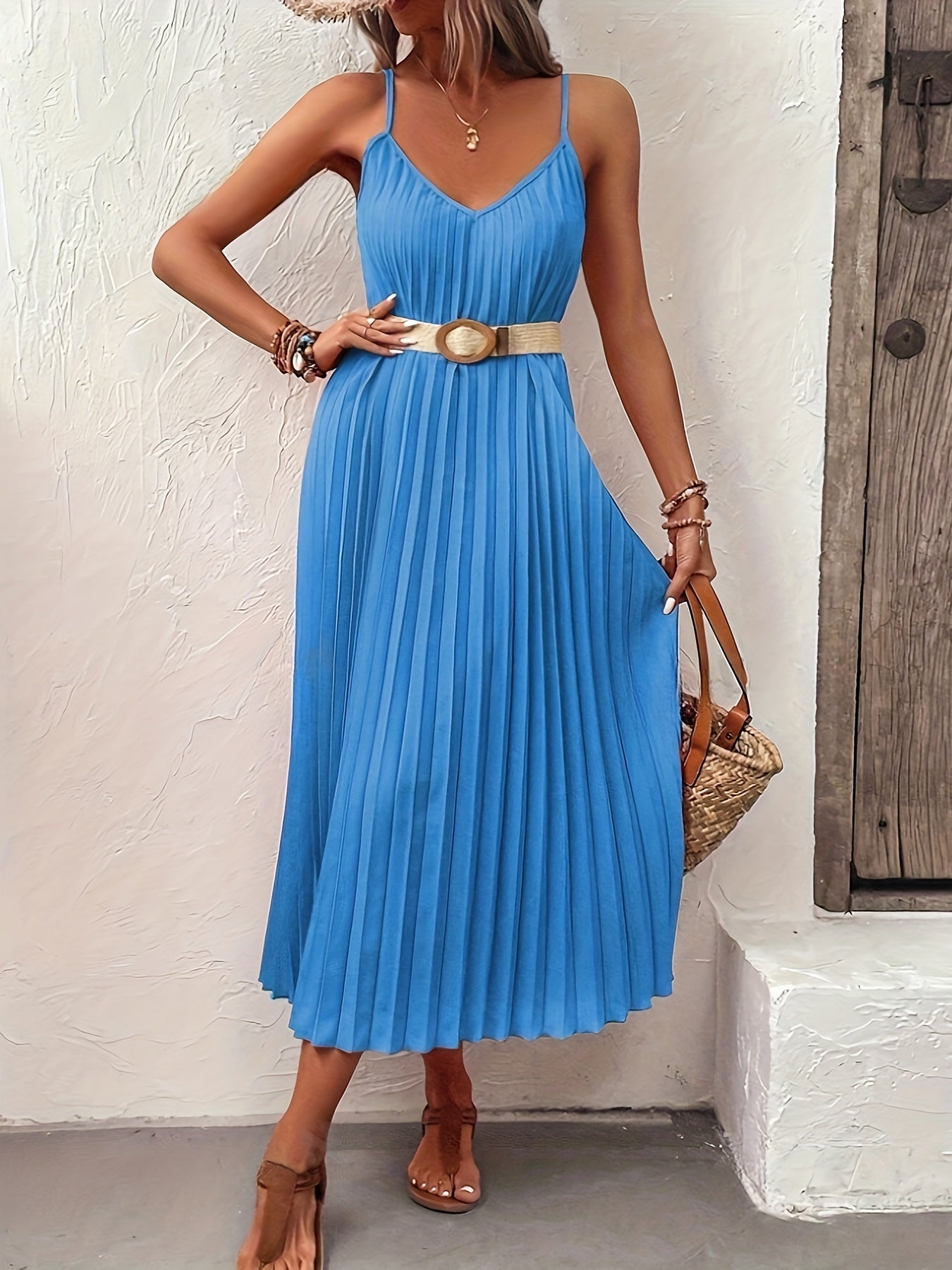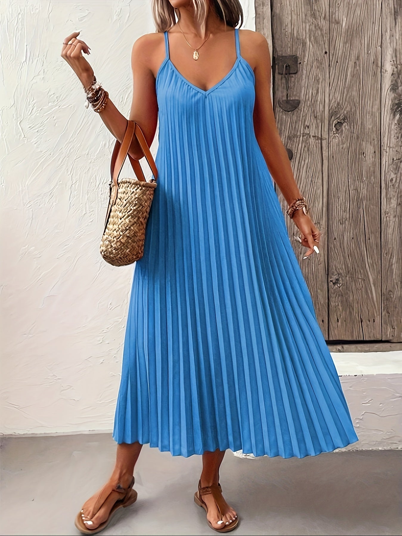 Scarlett | Vrouwelijke Plissé Jurk met Verstelbare Bandjes