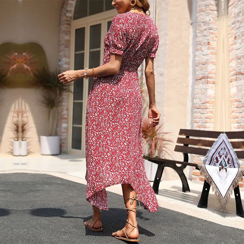 Scarlett - Midi-jurk met knopen en bloemenprint