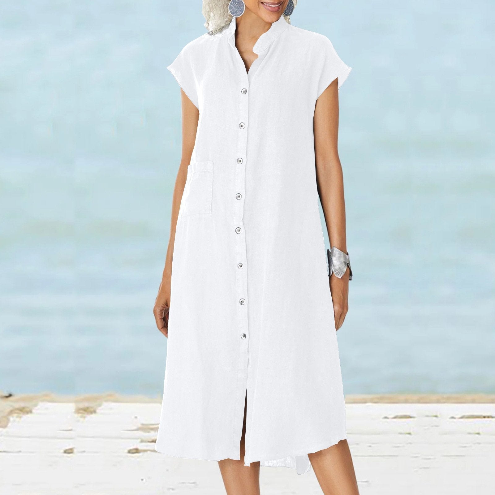 Stella - Katoenen linnen jurk met knoopsluiting en zakje