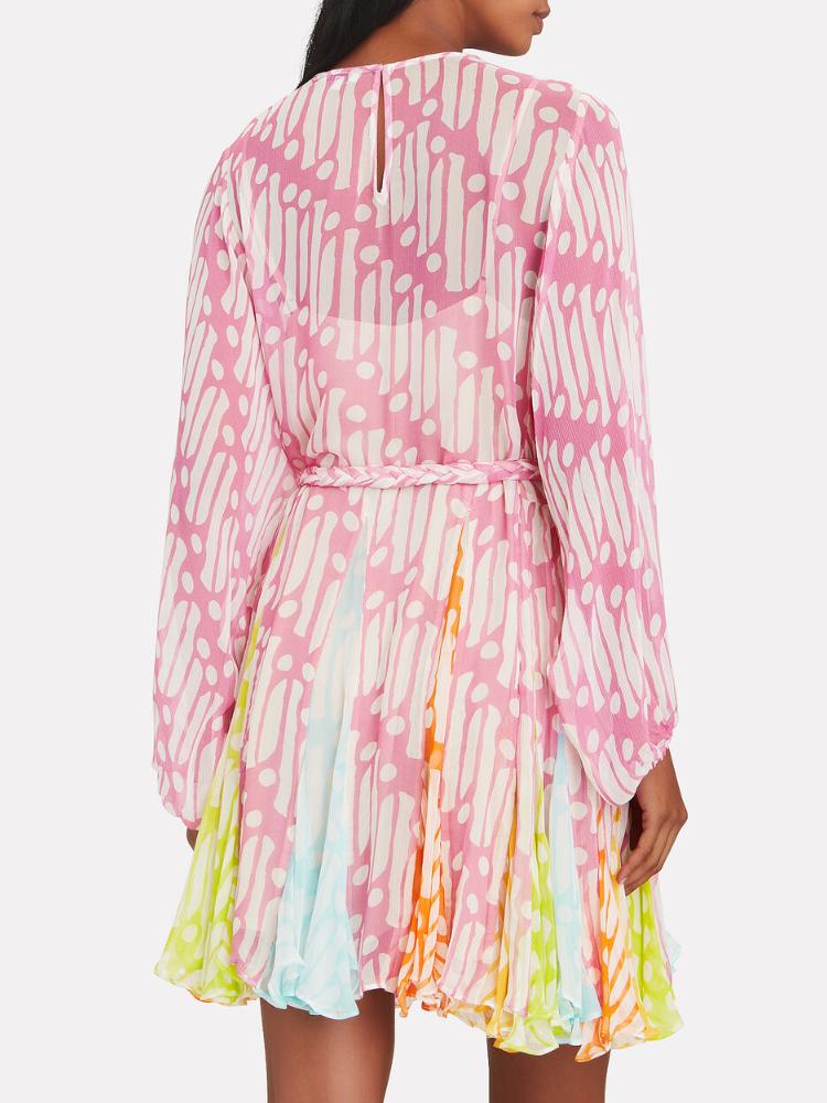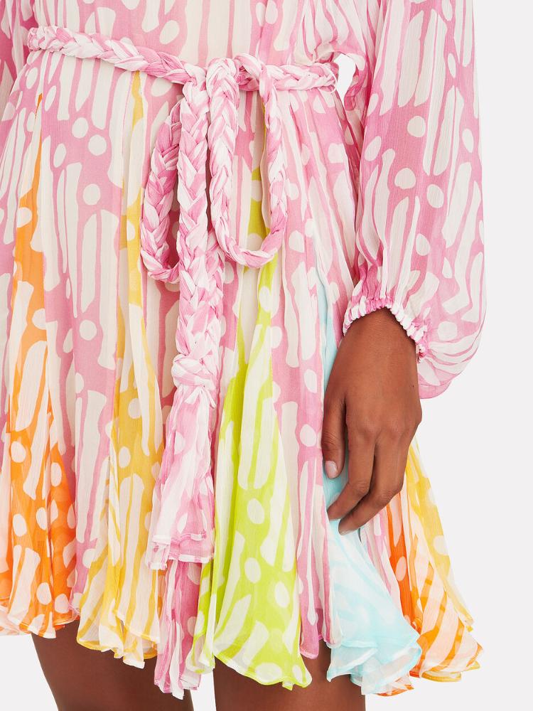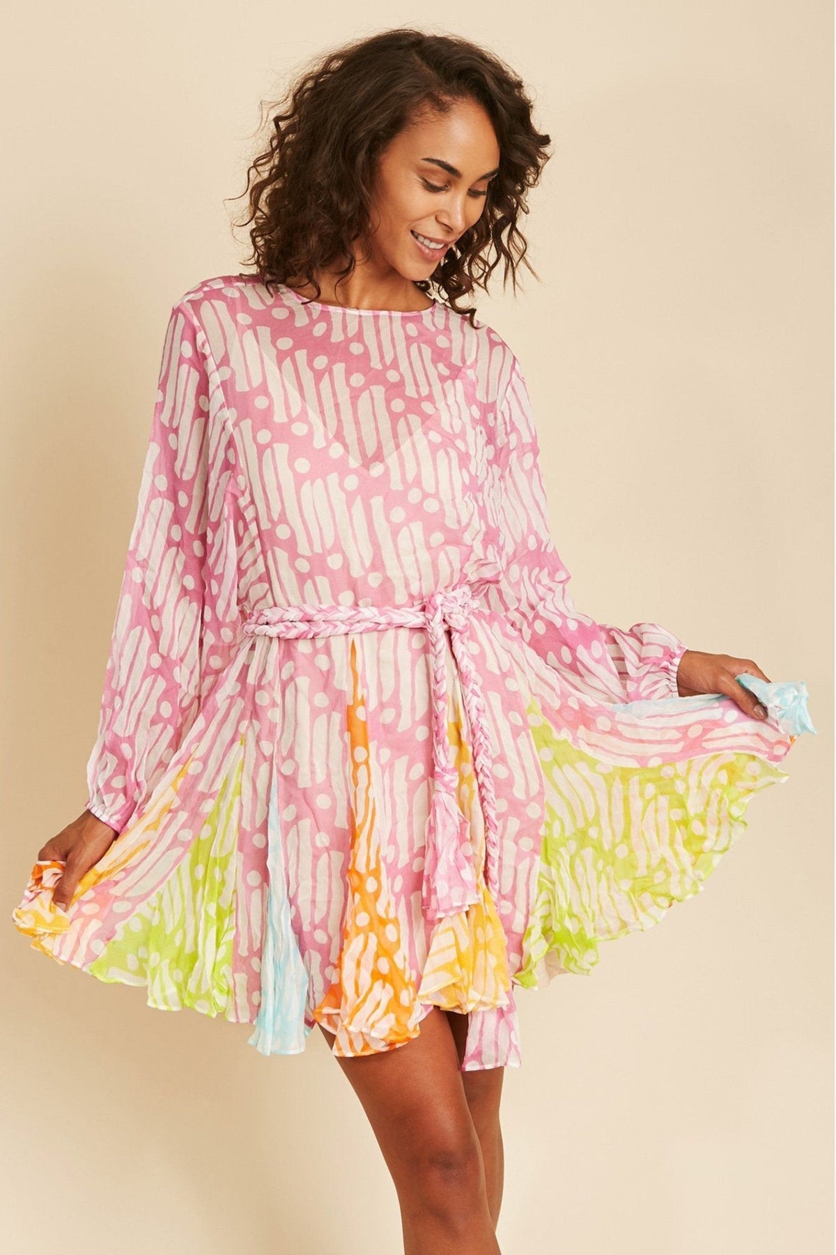 Tamara - bedrukte tuniek mini jurk met ronde kraag en riem
