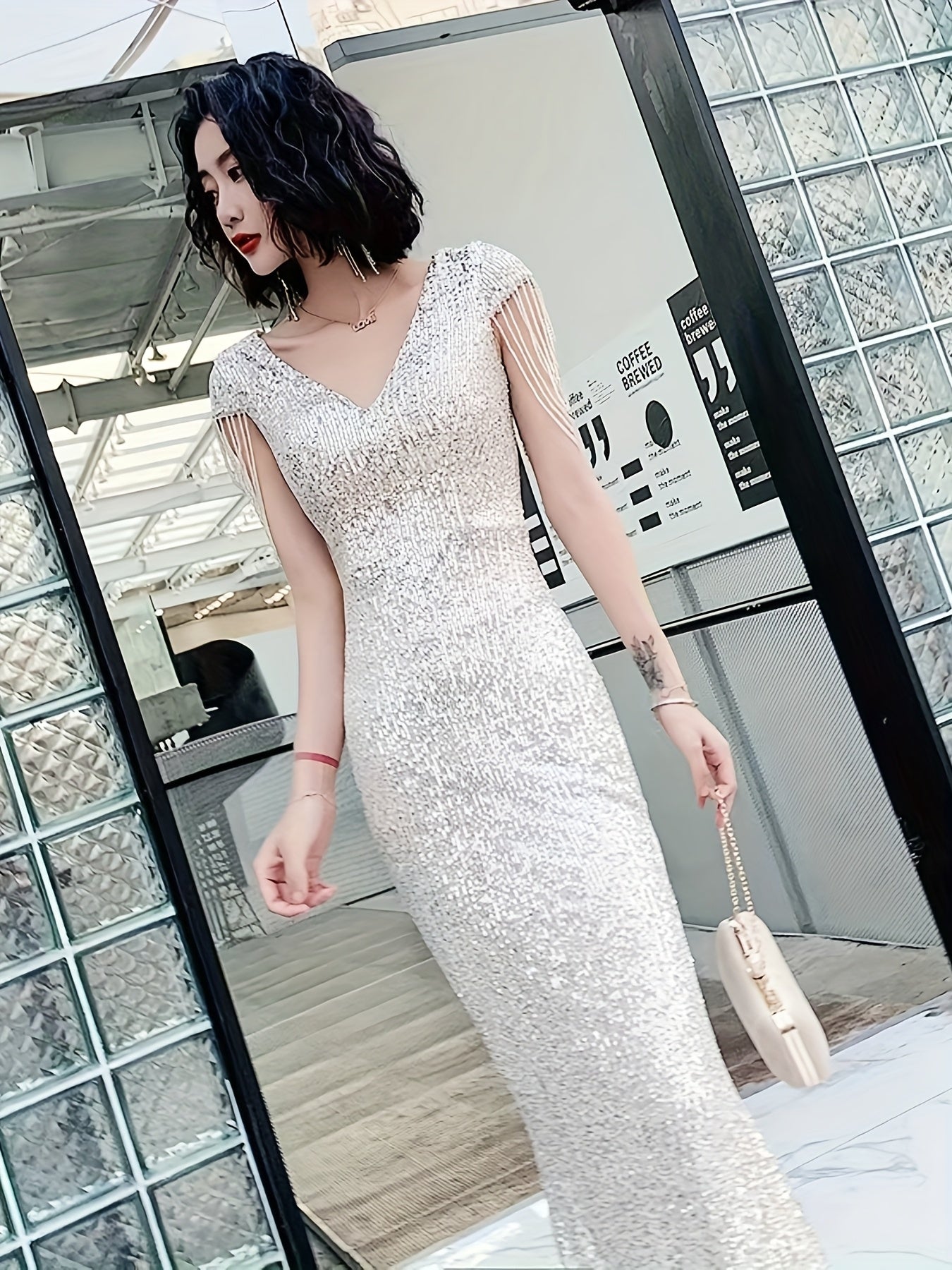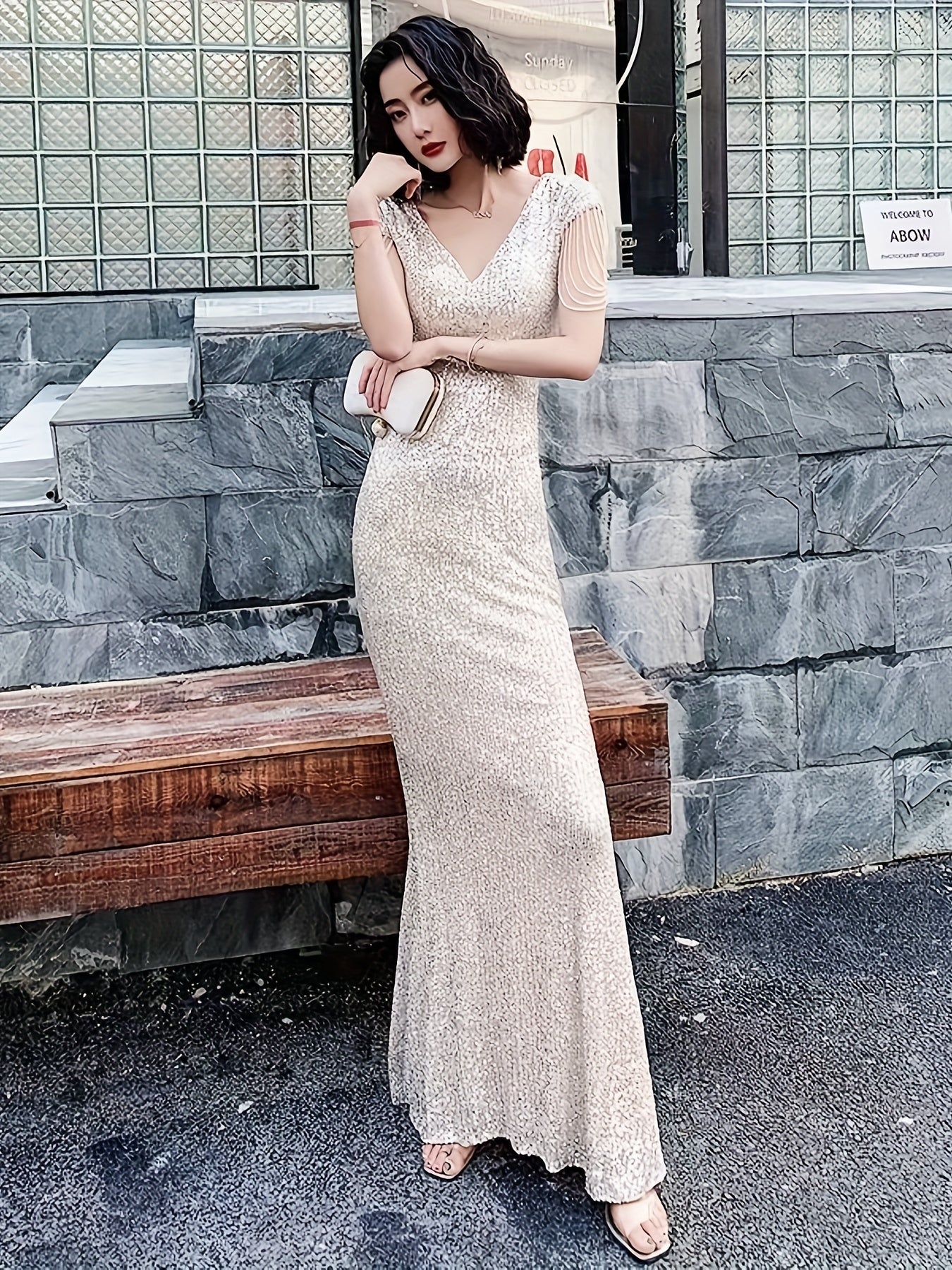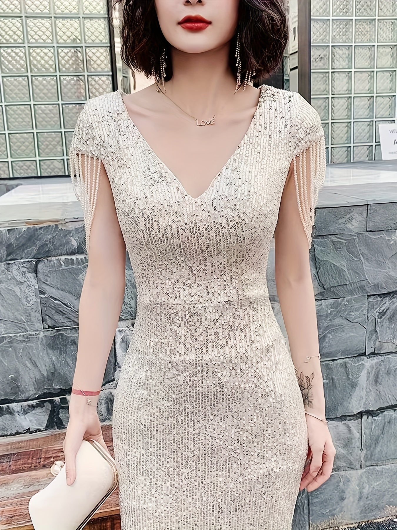Taylor | Glamour Jurk met Sequins en V-Hals voor Feestelijke Gelegenheden