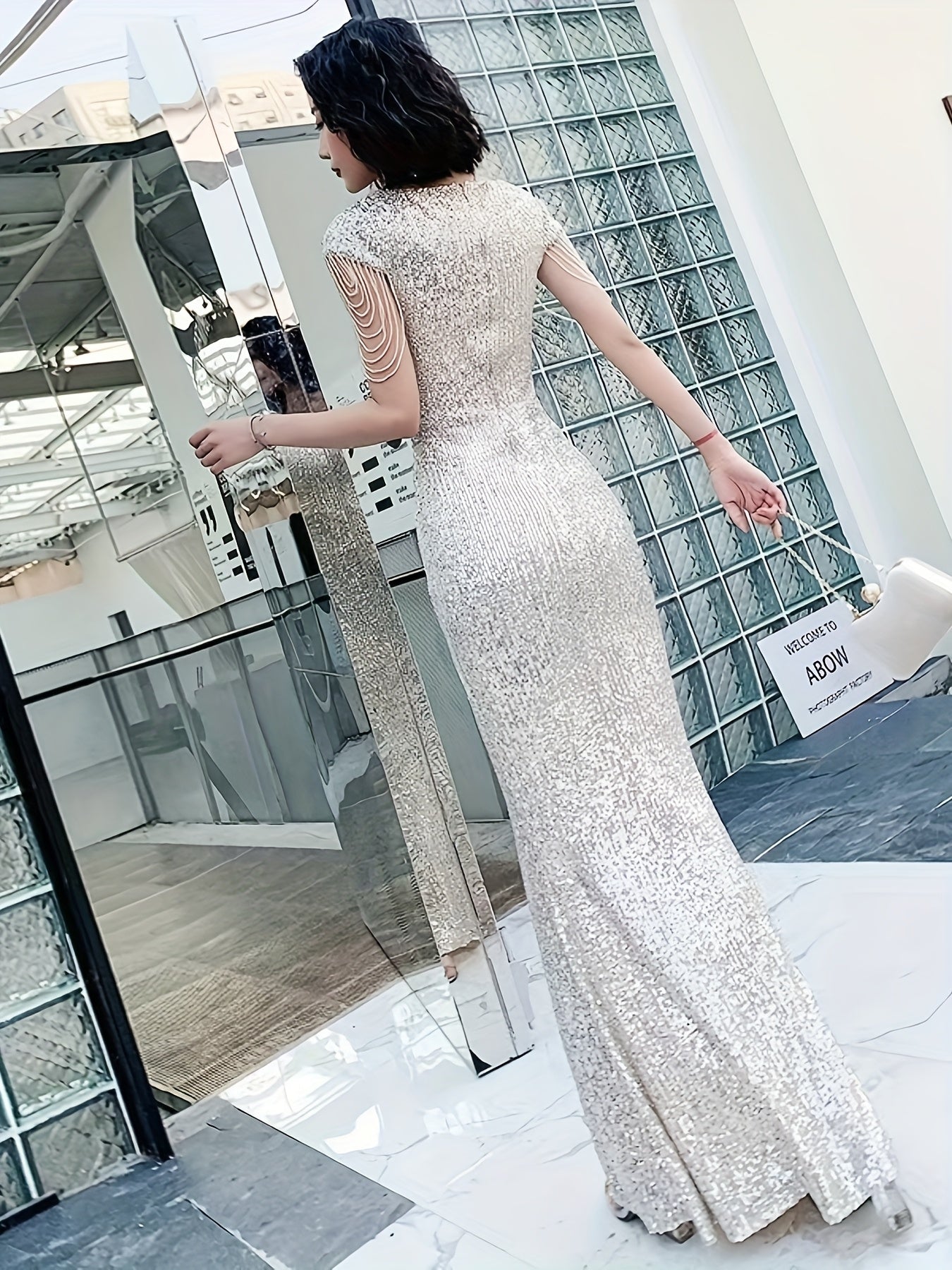 Laat je stralen in deze luxe avondjurk die elegantie en glamour combineert voor een onvergetelijke uitstraling!
