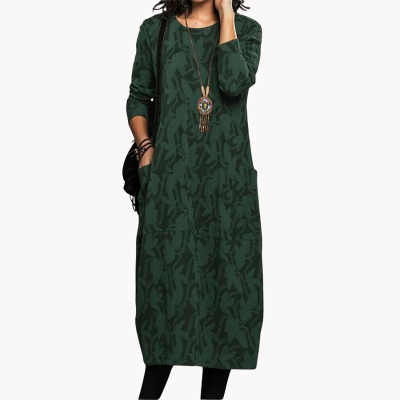 Deze verfijnde lange jurk combineert stijl en comfort in een prachtig ontwerp. Dankzij de vloeiende pasvorm en hoogwaardige materialen voel je je de hele dag zelfverzekerd en elegant. Of het nu gaat om een formele bijeenkomst of een bijzondere gelegenheid, deze tijdloze jurk zorgt ervoor dat je altijd in het middelpunt van de aandacht staat. Een must-have voor elke garderobe!