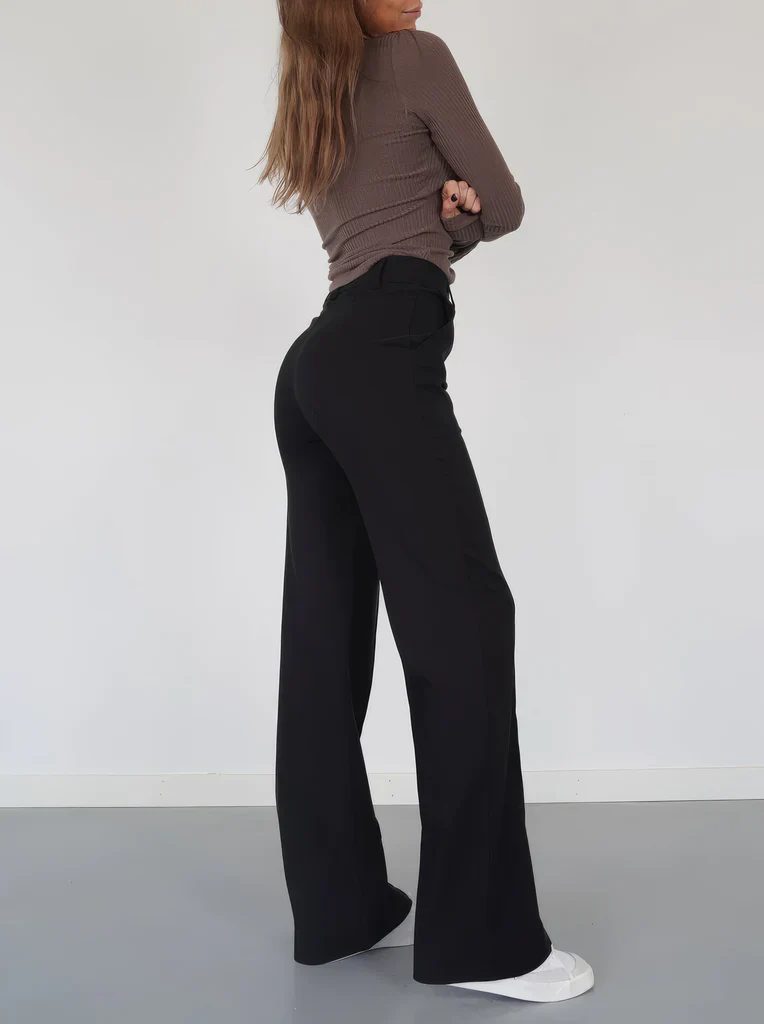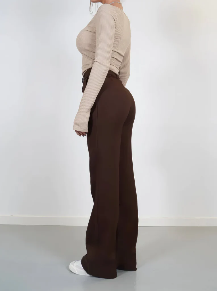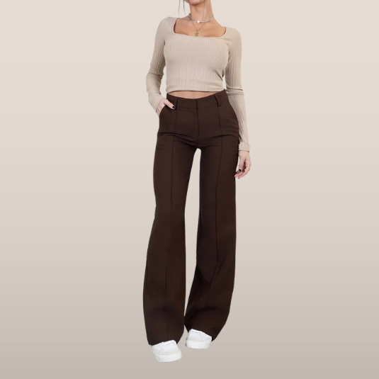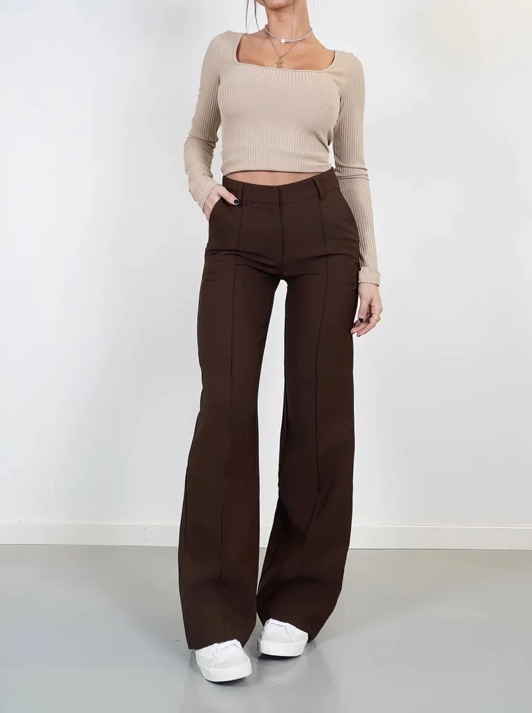 Flared Broek Dames High Waisted – Uitlopende Stretchbroek met Naden