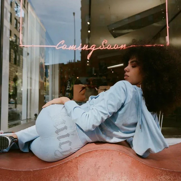This two-piece tracksuit combines style and comfort. Crafted from soft velour fabric and featuring a hood and a flattering fit, it's ideal for relaxing moments or casual outings. The eye-catching glitter text on the back adds a playful touch.