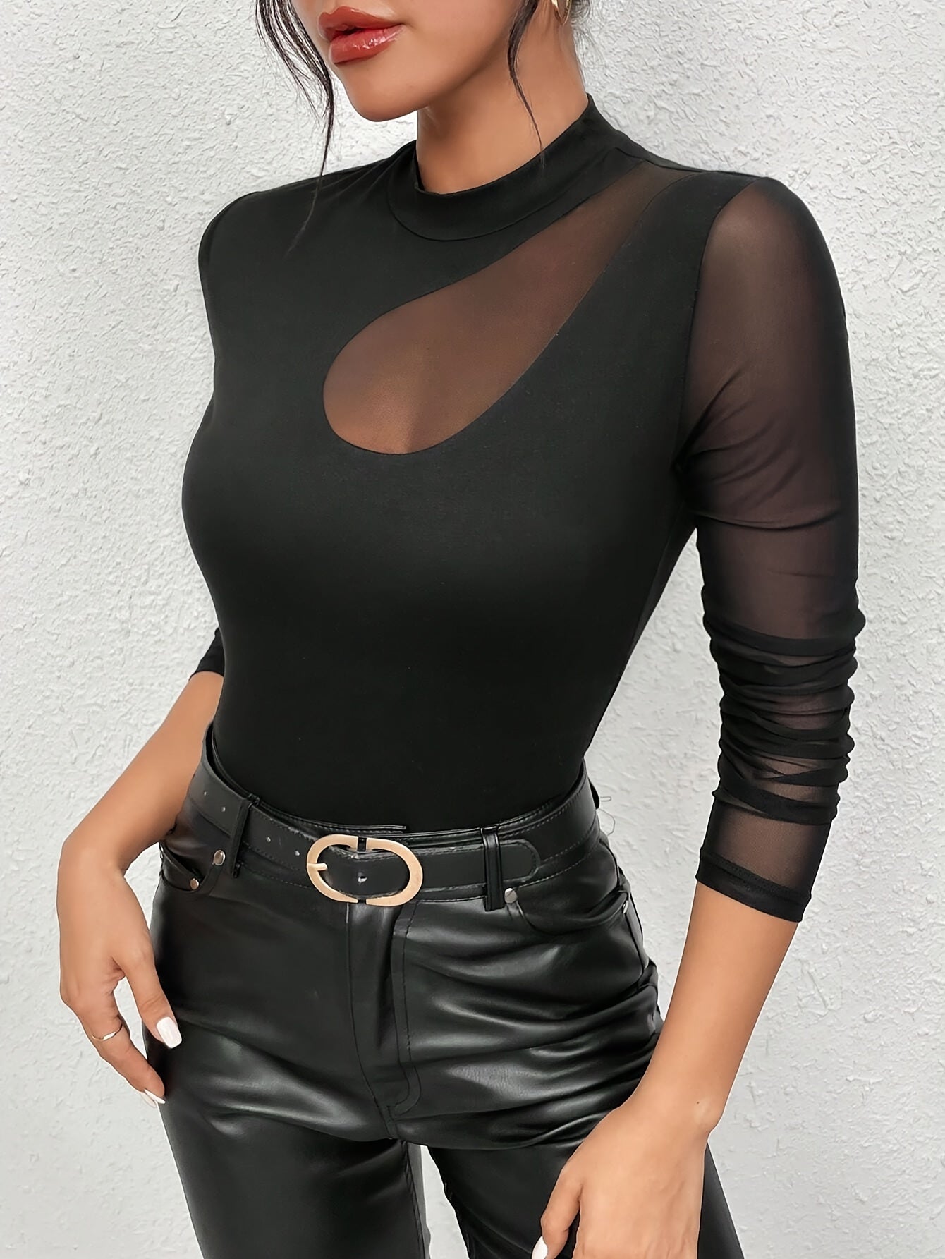 Abigail | Stijlvolle Mesh Top met Uitgesneden Hals