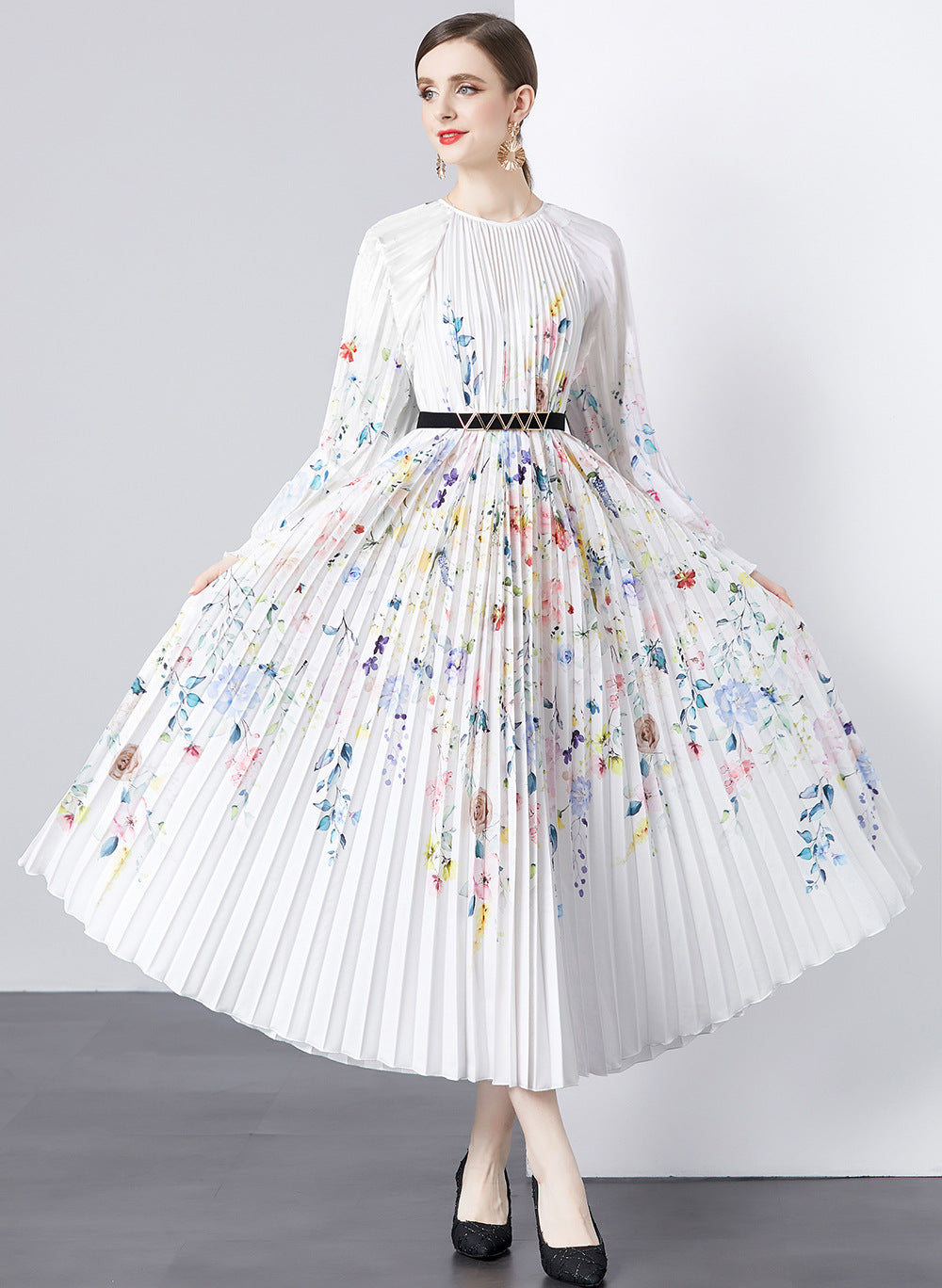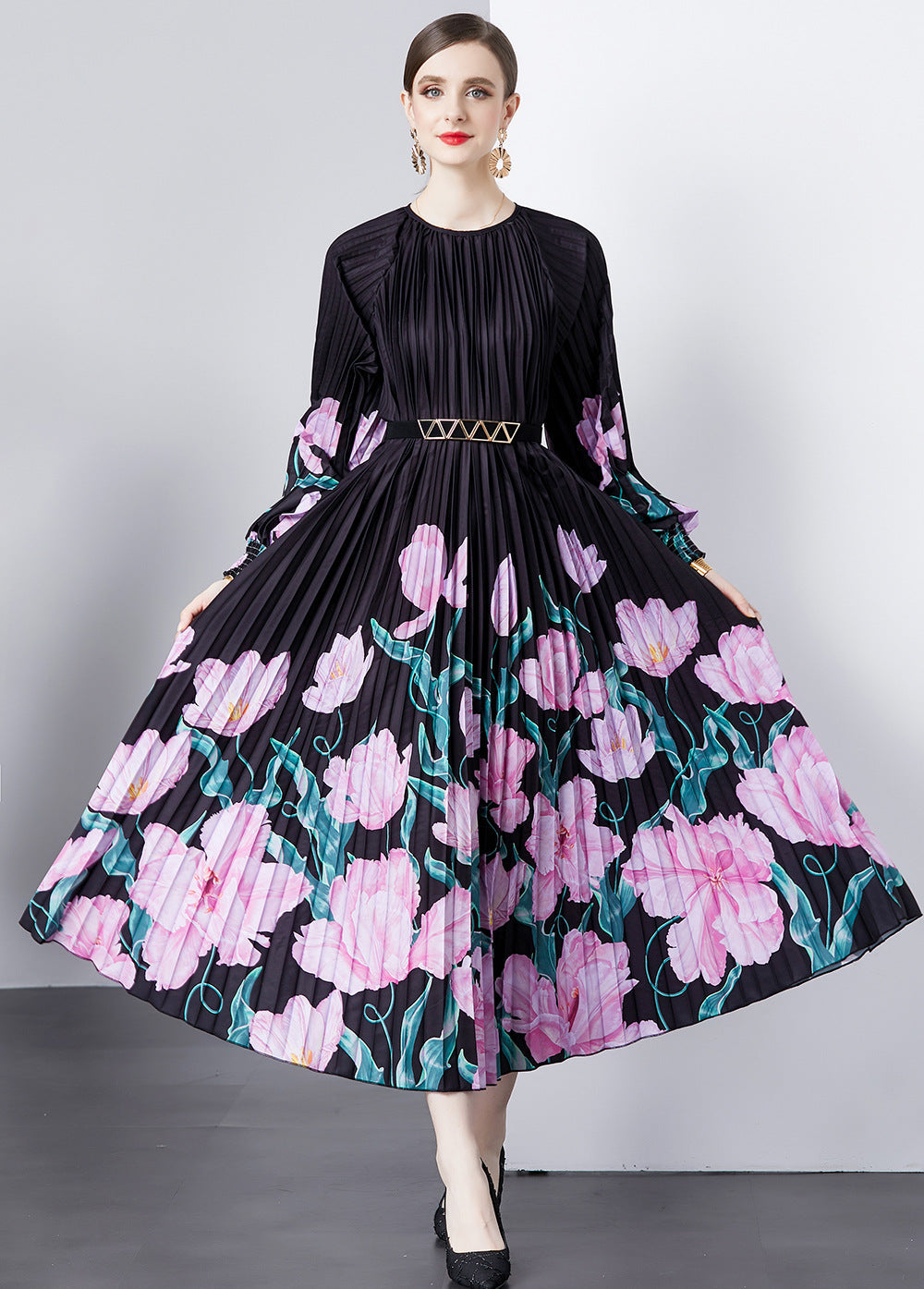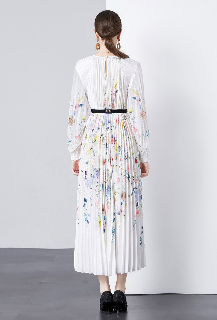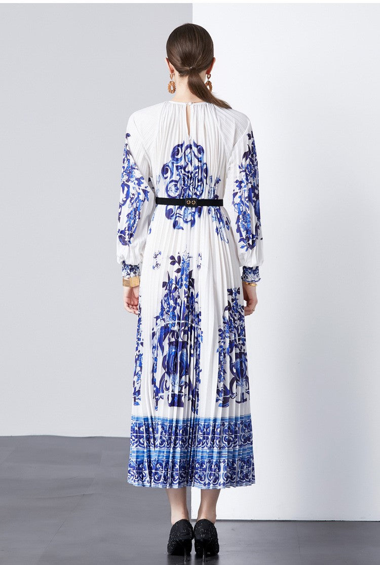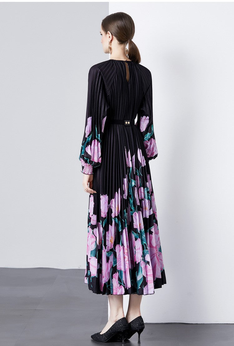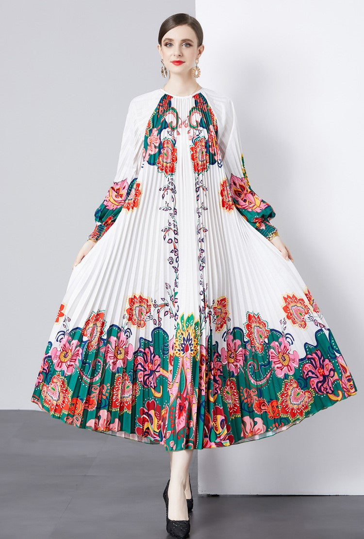 Alena- Bedrucktes langärmeliges Vintage-Kleid