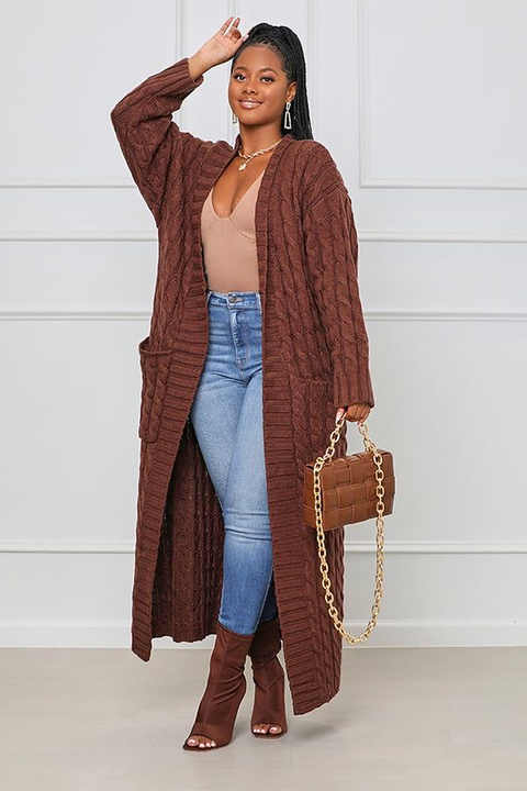 Amari | Luxe Lange Gebreide Cardigan met Pockets