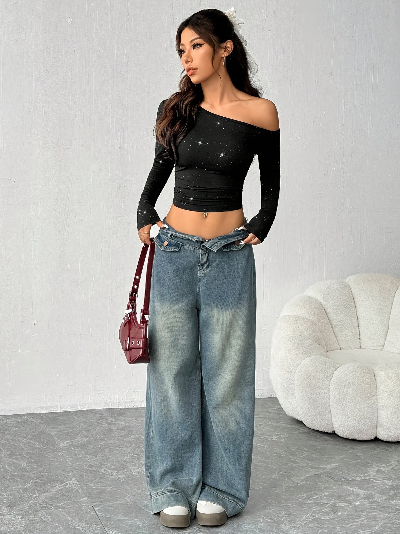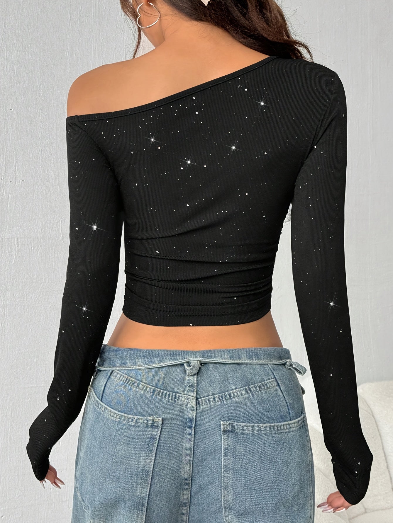 Voeg wat sprankeling toe aan je look met dit unieke, betoverende topje.