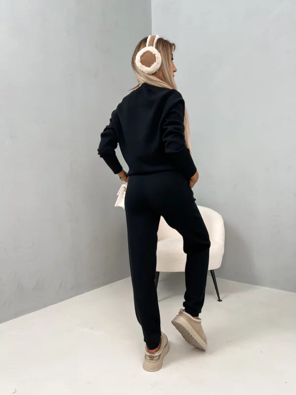 Aaldenberg Boetiek: Stap in de wereld van geraffineerde ontspanning met onze comfortabele sweater en joggerset, een meesterlijke samensmelting van stijl en zachtheid.