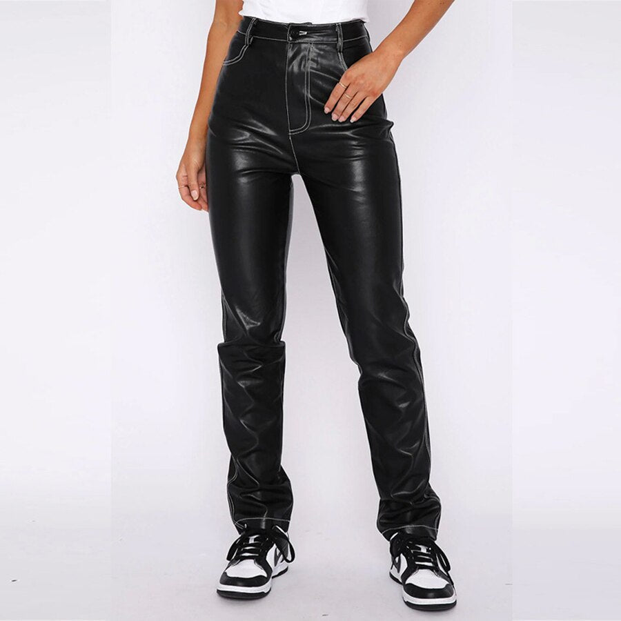Cara broek - Casual zwarte leren broek met hoge taille voor dagelijks gebruik
