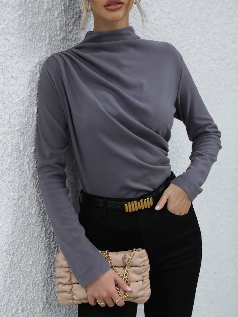 Verhoog je stijl met de Cato top met een elegante hoge halslijn en plooien.